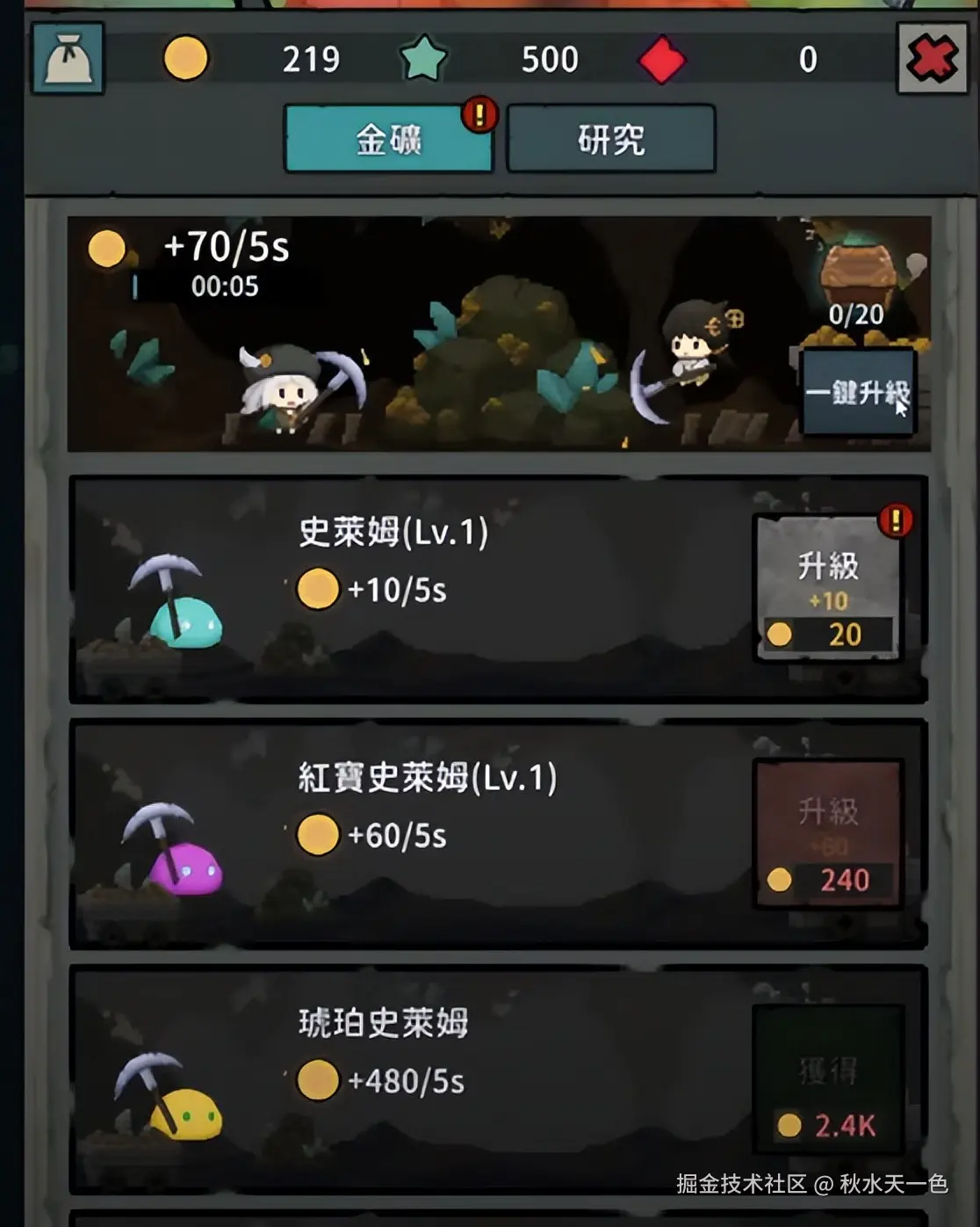 刷怪之余,【Pompo】还有放置挖矿玩法,用于提供升级强化所需货币。