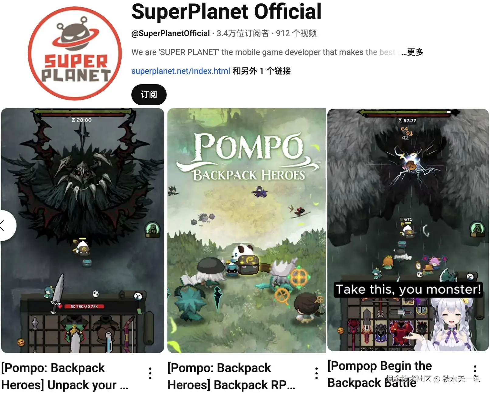 另一佐证便是Super Planet官方YouTube频道发了不少【Pompo: Backpack Heroes】的宣传视频,大概率算是实锤。