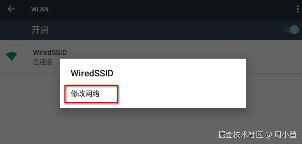 2.点击wifi 进入列表后,鼠标点击wifi位置,长按左键,会出现一个修改网络的弹窗,如下图: