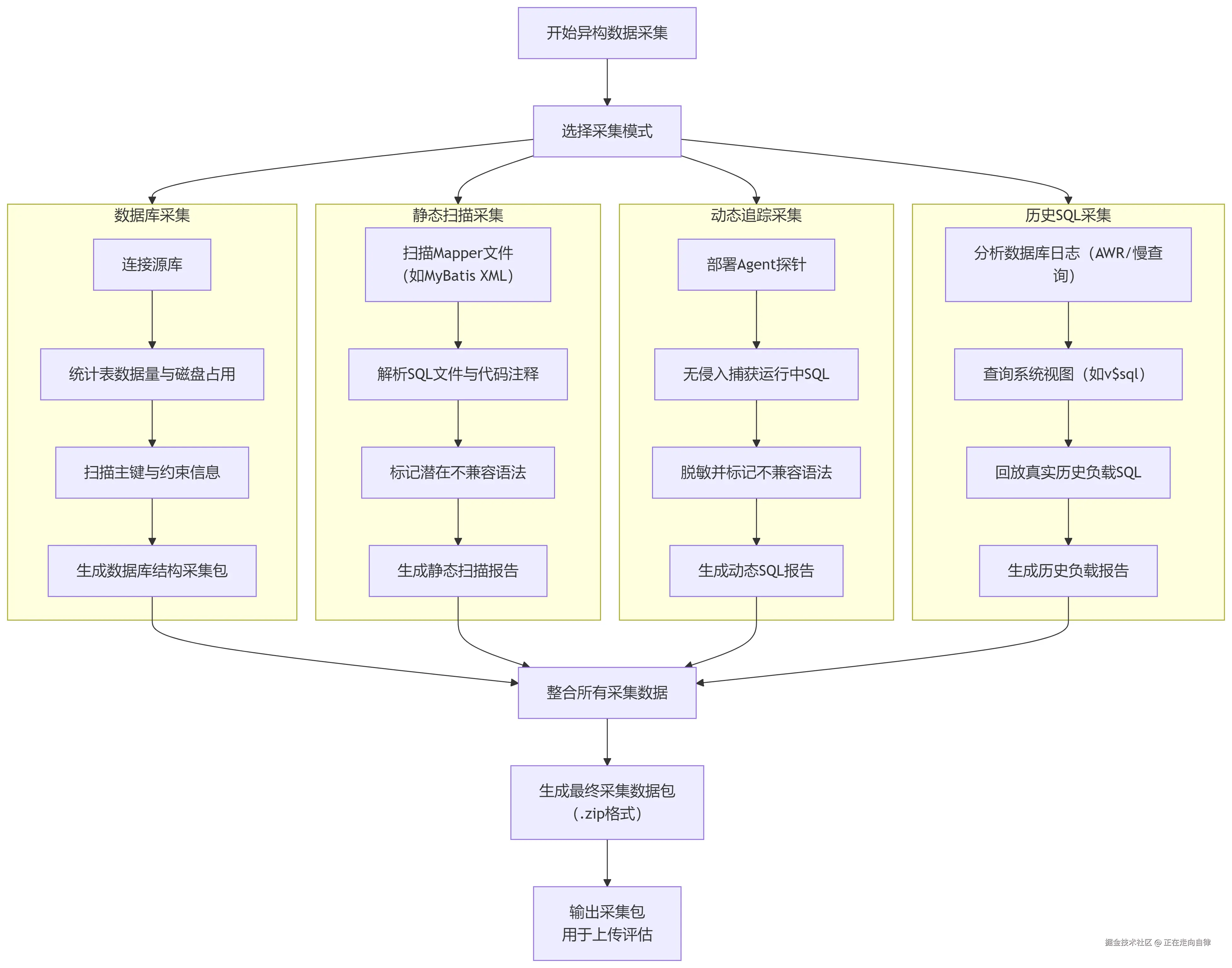 说明:一条命令同时触发数据库、应用、历史 SQL 三重采集,打包成 zip 供后续评估。