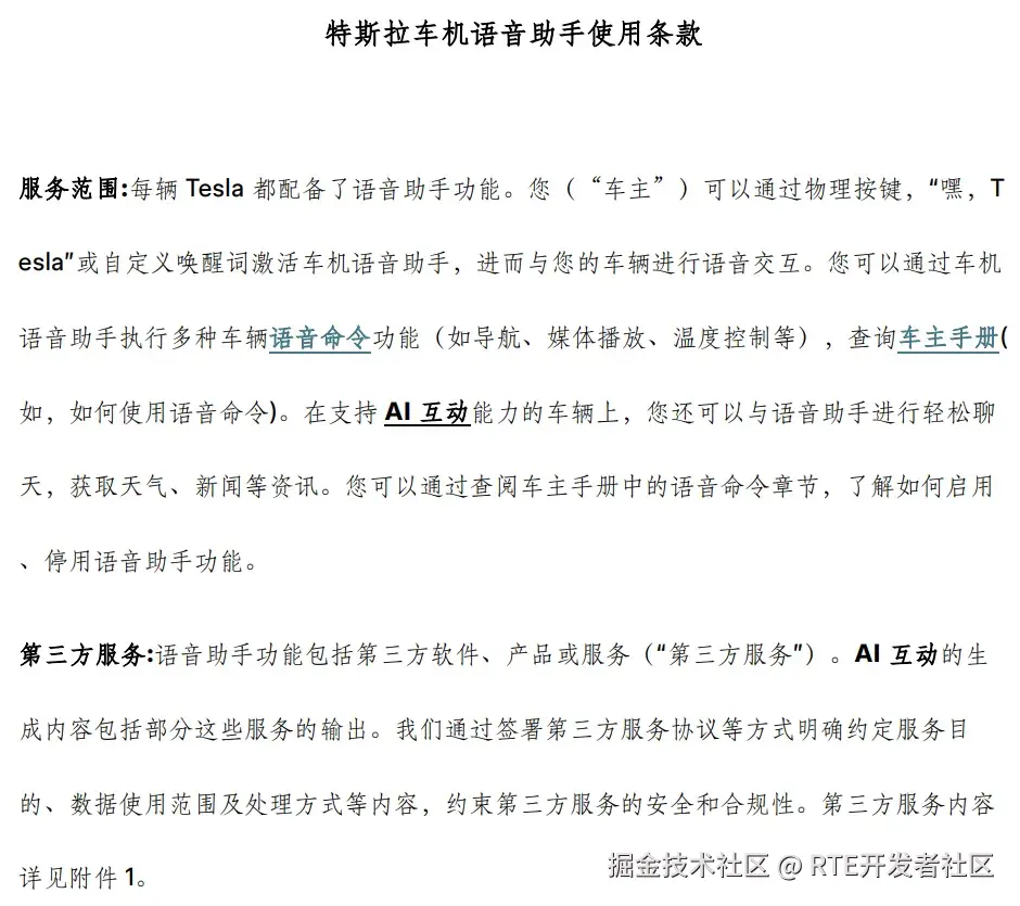 8 月 21 日,从特斯拉官网《特斯拉车机语音助手使用条款》里看到,每辆特斯拉都配备了语音助手功能。车主可以通过物理按键,「嘿,Tesla」或自定义唤醒词激活车机语音助手,进而与车辆进行语音交互。
