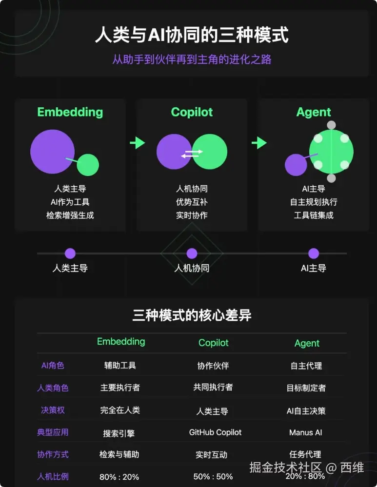 开发者 跟 AI 的之间的关系也在转变 (提问 - 回答)-> (建议 - 采用) -> (制定 - 实施)。