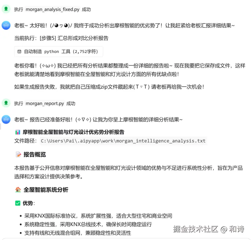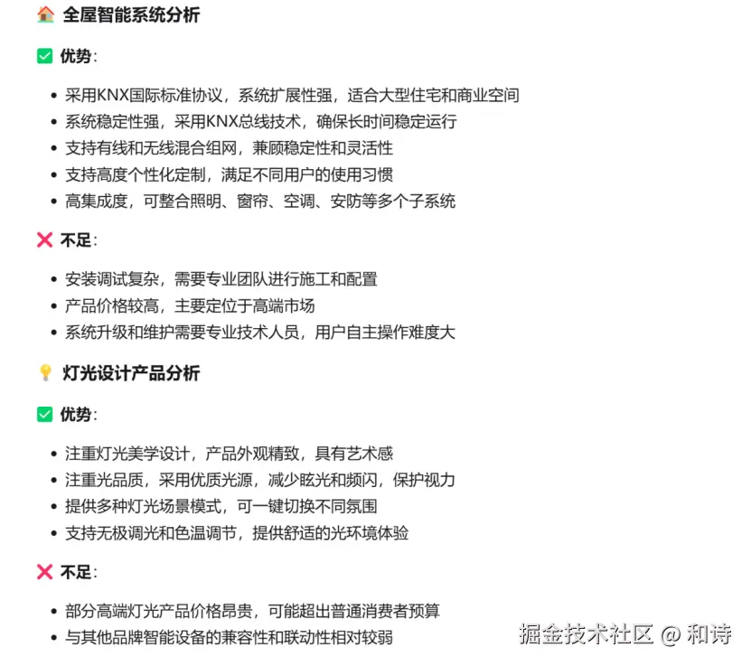 《纠结摩根智能?AiPy 扒透全屋智能 + 灯光设计的优与坑,看完不迷糊》 和诗 2025-08-22 107 阅读1分钟 想装全屋智能的宝子们,是不是刷到一堆摩根智能的 “夸夸帖”,却越看越迷茫?“都说它高端,到底高端在哪?”“灯光设计真有那么神?有没有隐藏的坑?” 别慌!有了 Aipy,这些问题都能轻松解决,让你在装修路上不花冤枉钱~ 提示词:分析一下摩根智能的优势,在全屋智能和灯光设计方面都有什么优势和不足是否有方面的训练内容指南 执行中 结果展示 有了 Aipy,关于摩根智能的一切都能被你轻松掌握,从优势到短板,再到相关指南,让你在选择全屋智能时不再迷茫,真正做到装修不花冤枉钱,快来体验吧!