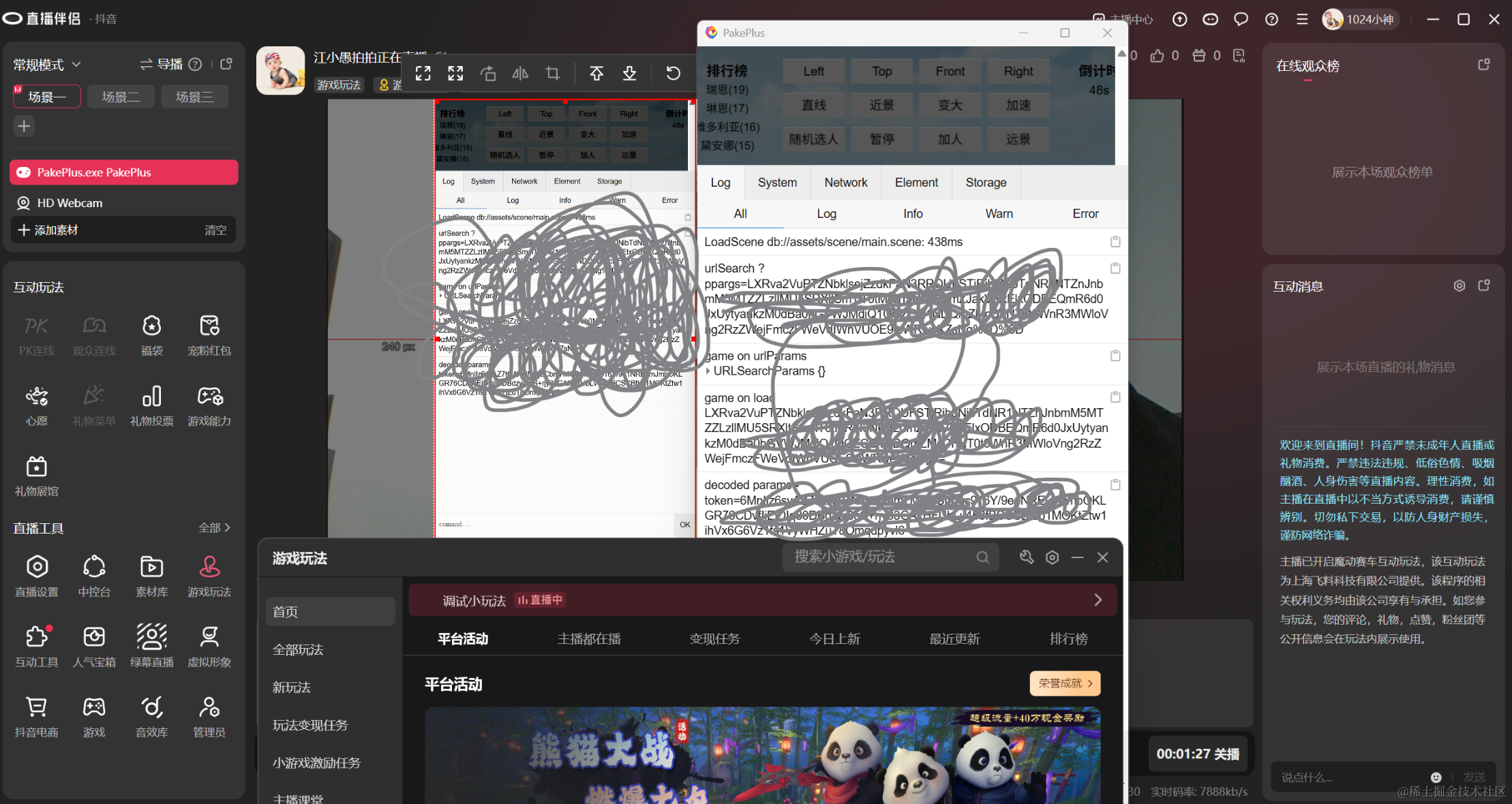 启动参数的获取逻辑就是需要现在rust后端拿到,然后使用base64编码后,通过查询参数传递到url中,然后在前端通过js拿到这些参数,最后使用base64解码,即可拿到token。因为抖音直播小玩法的启动会传递给exe一个token参数,然后前端拿到这个token之后,才可以开始接下来的小玩法逻辑。