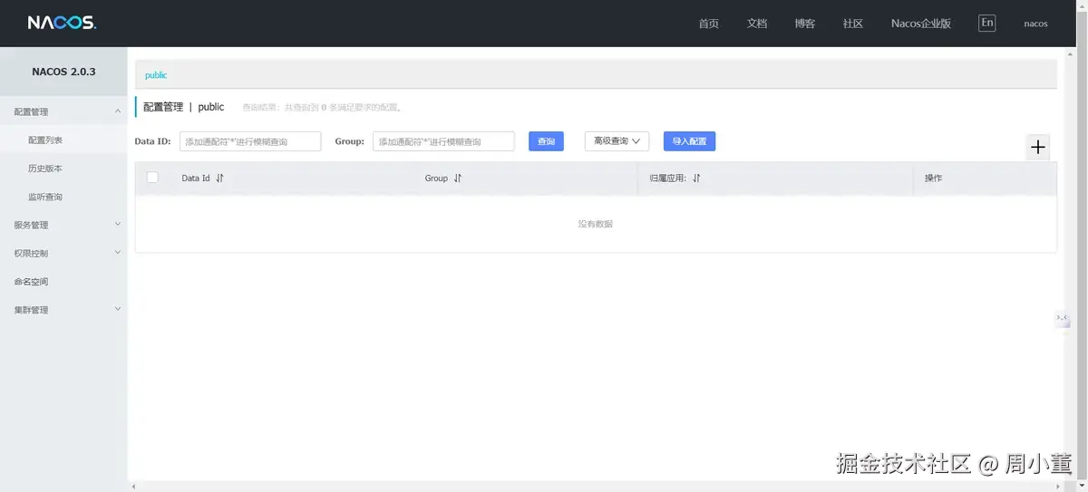 如果没有在配置文件中修改密码,这里的用户名和密码是:nacos/nacos,直接登录即可。