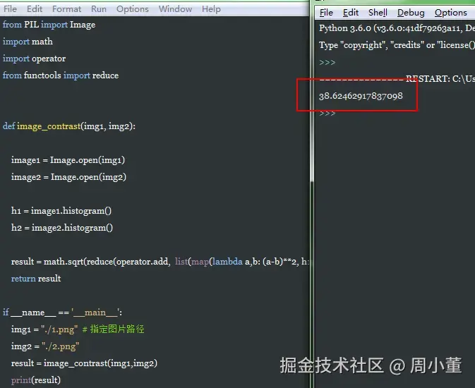 如果两张图片完全相等,则返回结果为浮点类型“0.0”,如果不相同则返回结果值越大。