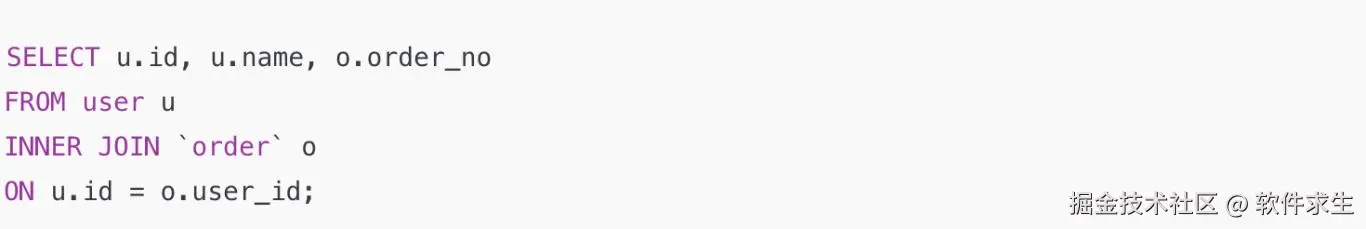 比如,有用户表 user 和订单表 order,我要查下单的用户,SQL是这样的: