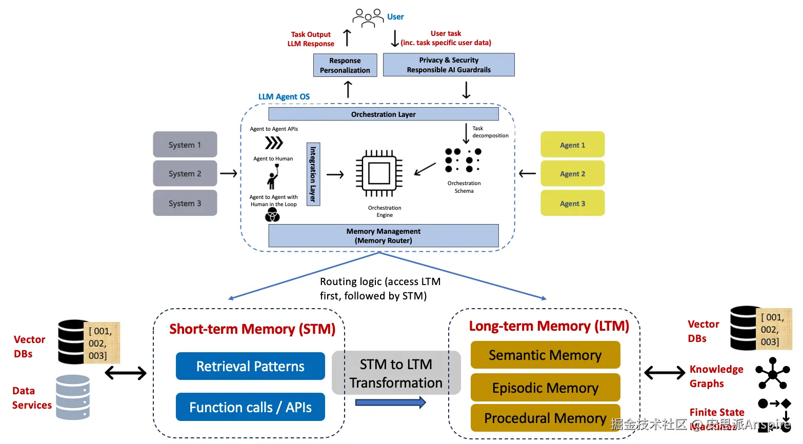图6展示了agentic AI系统的全面内存管理,包括短期和长期内存模块。