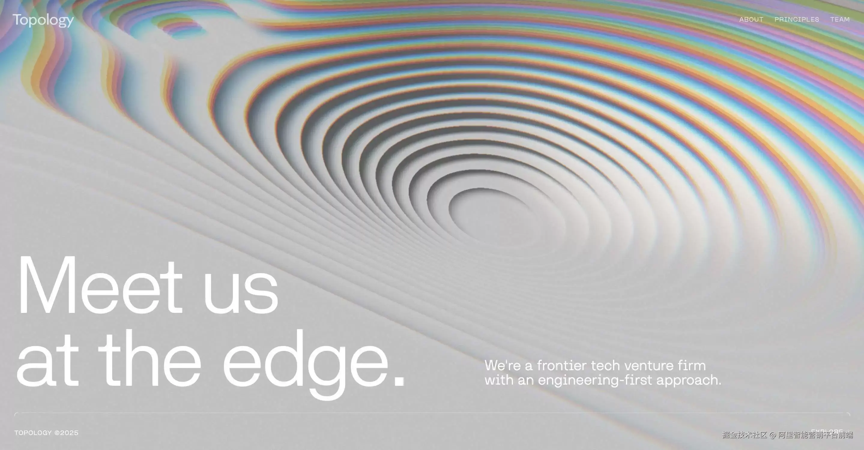 这个网站设计的很克制,我们能看到进入网站时的等高线其动势、配色都十分考究,一层层的扩张、随着摄像机视角的转换进入,都让人对内页的布局和设计充满了期待。