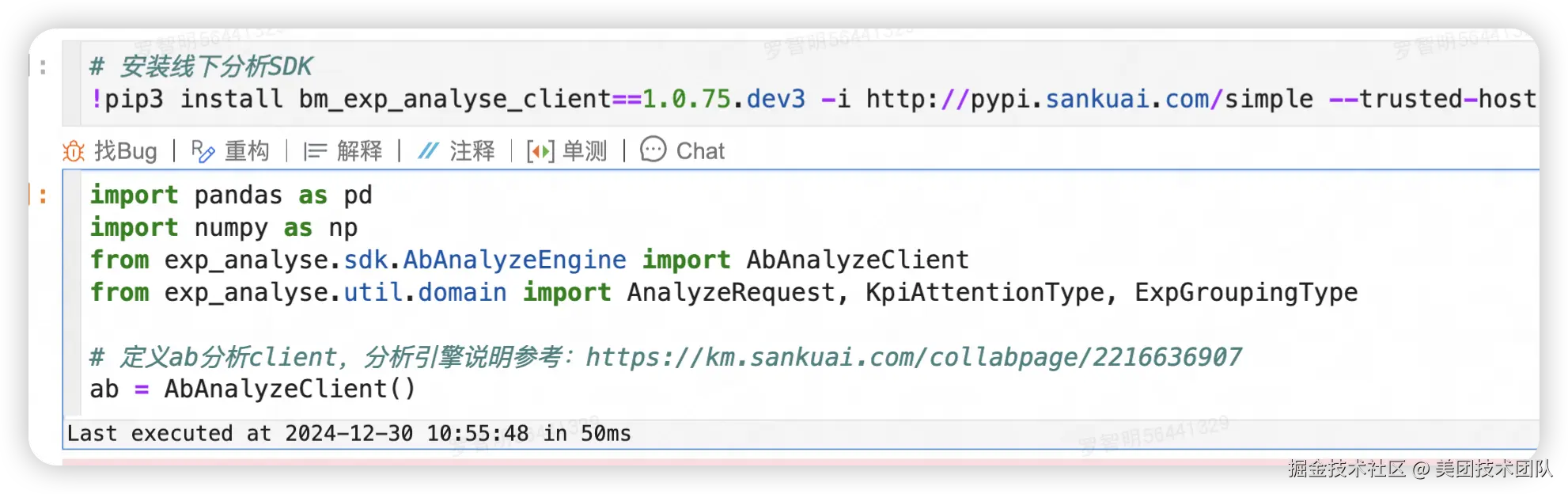 通过pip命令安装线下分析SDK,引入核心分析客户端AbAnalyzeClient及相关类。