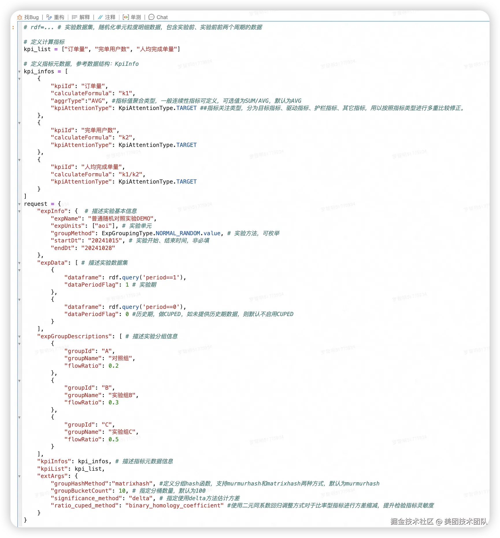 1. 通过定义数据集、实验分组、分析指标等信息来构造分析请求,请求参数对应于数据结构[AnalyzeRequest]。
