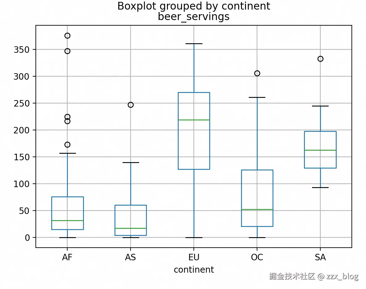 对各大洲数据计算平均值后,可以看到各大洲人均消耗酒精量。