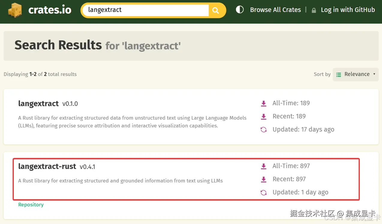 从文档的质量及 crates.io 下载量来看,langextract-rust 更胜一筹,所以我选择了它😎。