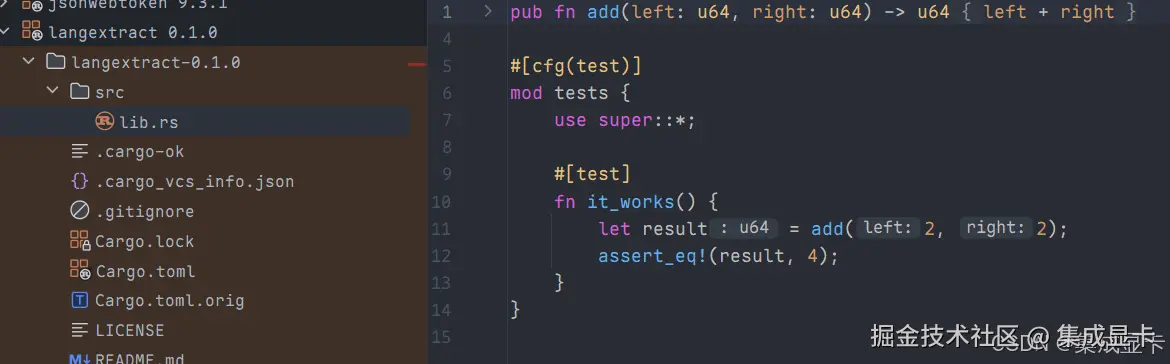 另外提一句,daleione/langextract 提交到 crates.io 的库应该是搞错了,依赖下载后是货不对板的一个示例函数(间下图),估计是作者没上传最新的版本。