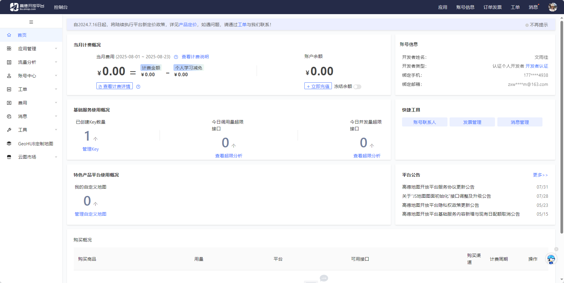 [https://console.amap.com/dev/index](https://console.amap.com/dev/index)进入应用管理