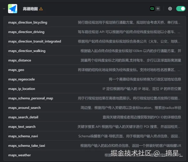 最让我印象深刻的是,这个系统不仅能够规划出科学合理的旅游路线,还能实时考虑天气因素、交通状况、景点开放时间等多维度信息,真正做到了智能化的旅行规划。从地理编码到路径规划,从POI搜索到天气查询,高德MCP 2.0提供的14项核心能力覆盖了出行场景的方方面面,而Trae则将这些能力完美地整合到了用户友好的界面中。