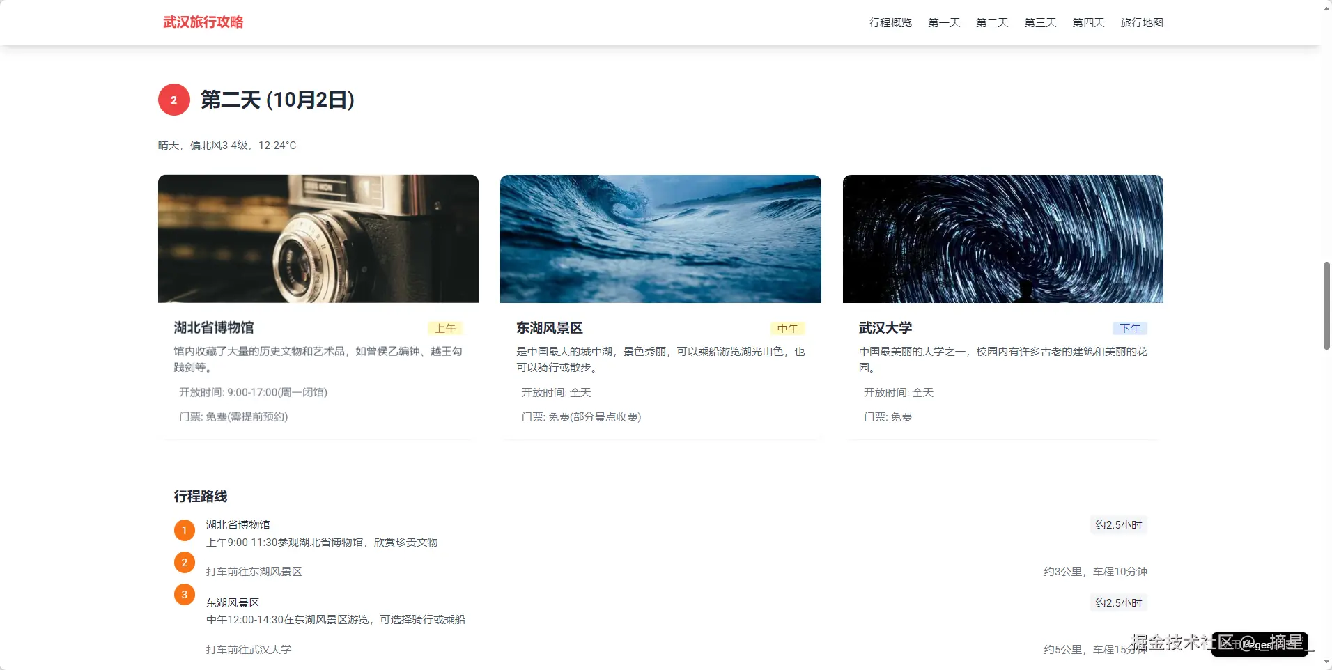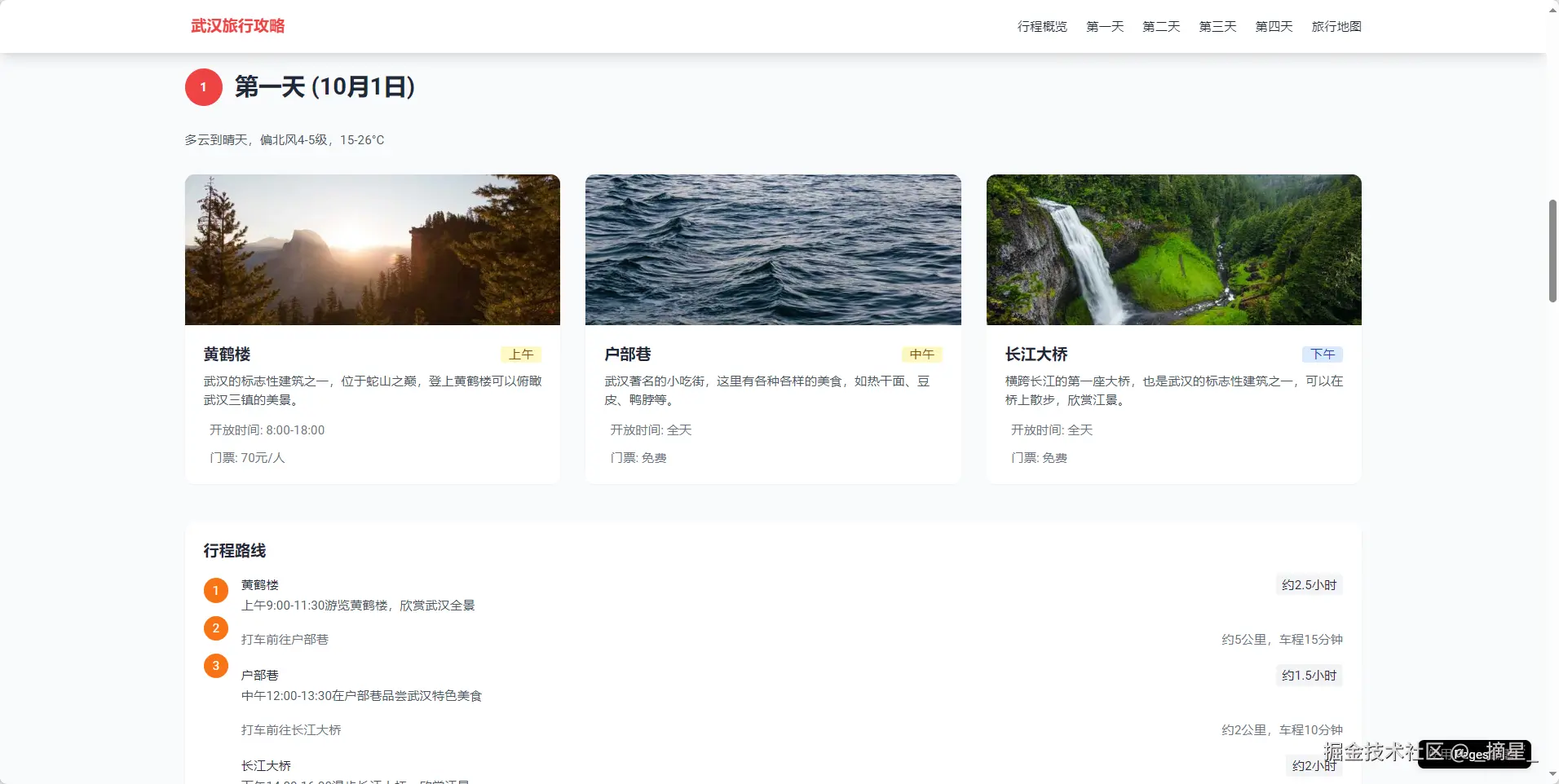 回顾整个开发过程,最让我感动的是技术的温度。当我用自然语言描述想要为国庆出游的朋友们制作一个贴心的旅游攻略时,AI理解了我的情感需求,不仅生成了功能完整的系统,还考虑了天气变化、交通便利性、游览舒适度等人性化因素。这种人机协作的开发体验,让我看到了技术与人文关怀的完美结合。