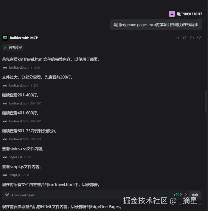 为了演示效果,我才用了EdgeOne Pages将本页面部署上线,这样大家就可以继续预览访问了调用edgeone pages mcp将本项目部署为在线网页