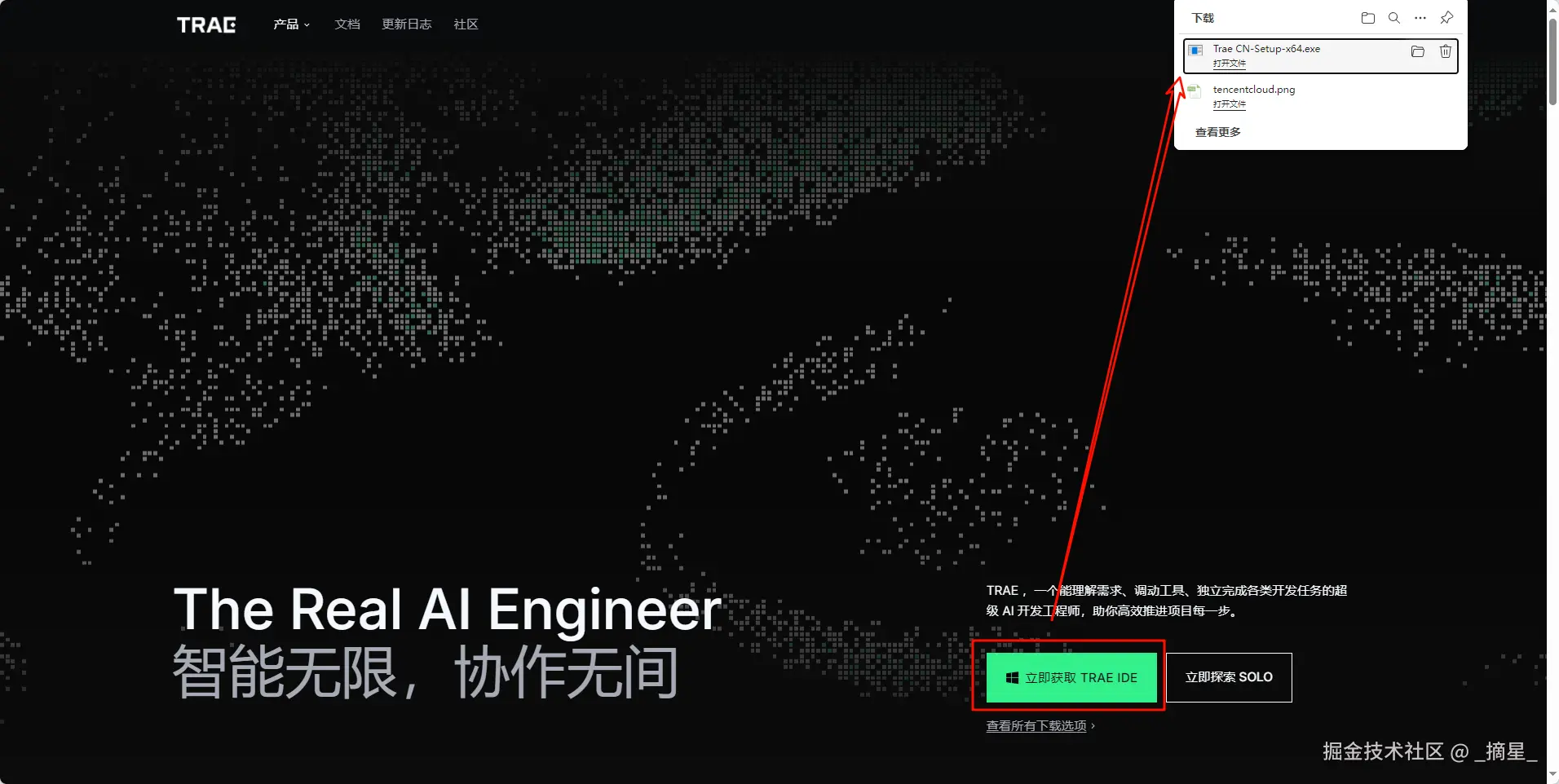 Trae([https://www.trae.cn/)是一款革命性的AI集成开发环境,它通过自然语言处理技术,让开发者能够用简单的描述来生成复杂的应用程序。](https://www.trae.cn/)是一款革命性的AI集成开发环境,它通过自然语言处理技术,让开发者能够用简单的描述来生成复杂的应用程序。)# Trae安装非常简单