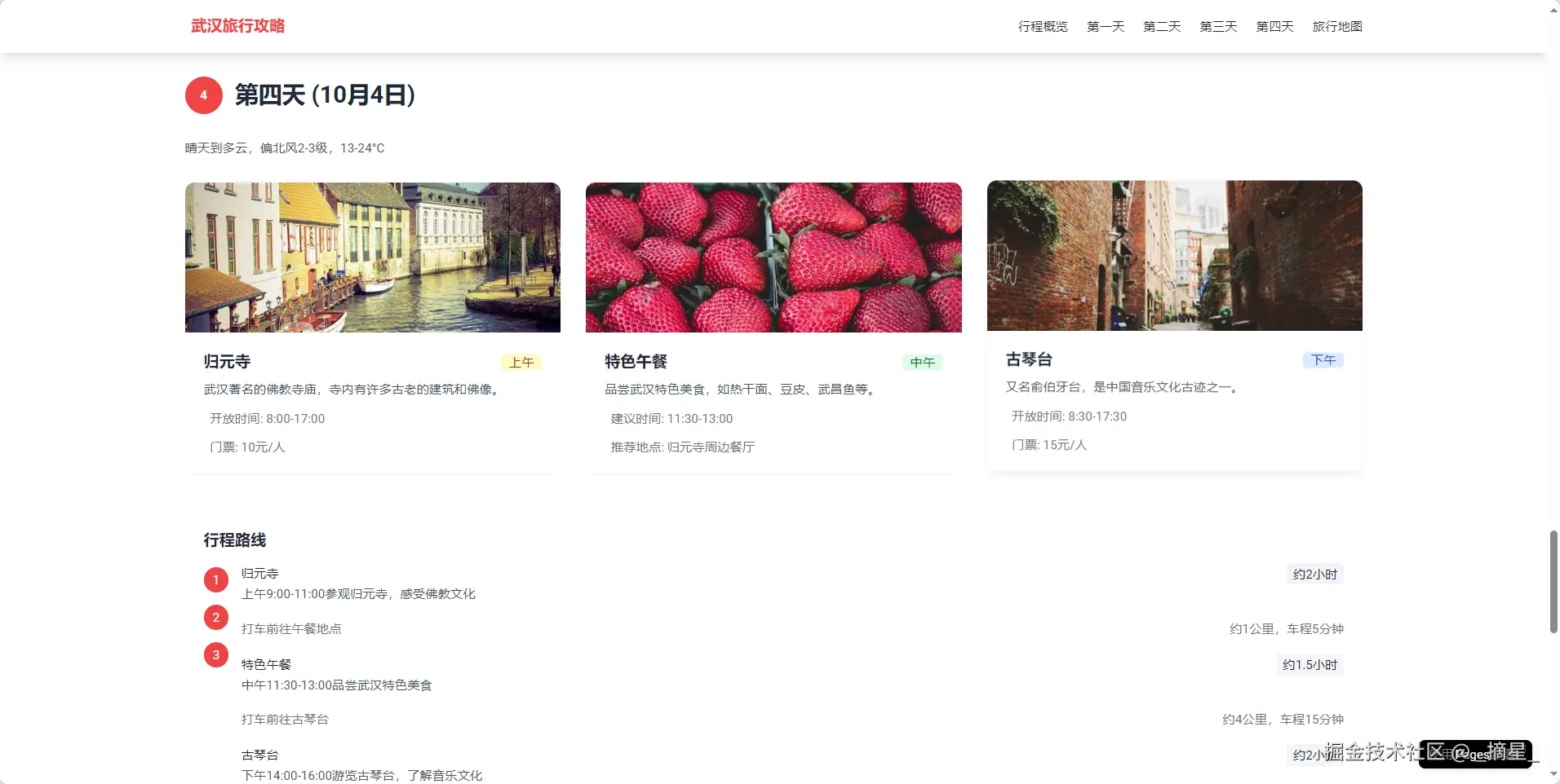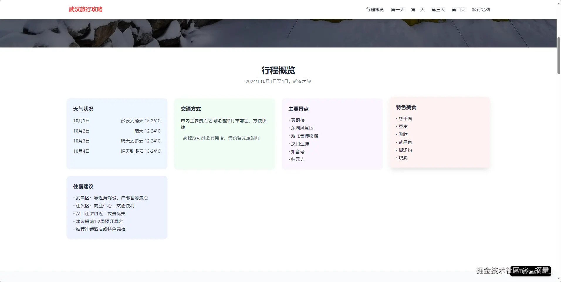 这次实践的目标是为国庆节制作一个武汉4天旅游攻略,具体需求包括:"在快速发展的AI时代,最重要的不是掌握所有技术细节,而是学会如何与AI协作,让技术为创意服务。" —— 摘星