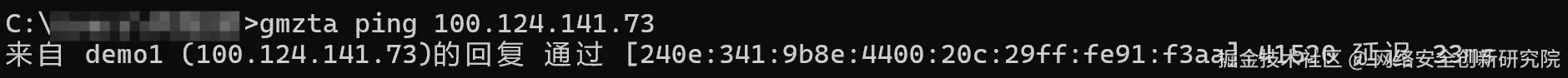 例如,当使用电脑ping一台用于测试的设备demo1时,此时显示通过公网IPV6([240e:341:9b8e:4400:20c:29ff:fe91:f3aa]:41520)直接连接,则表明设备之间采用的是直连方式。