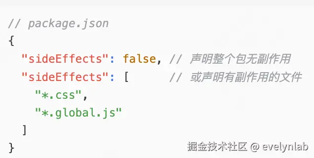 对于被标记为有副作用的模块(如 CSS 文件),Webpack 会跳过静态分析阶段,不会尝试移除这些模块中"看似未使用"的代码。它会假设整个模块都是必需的。