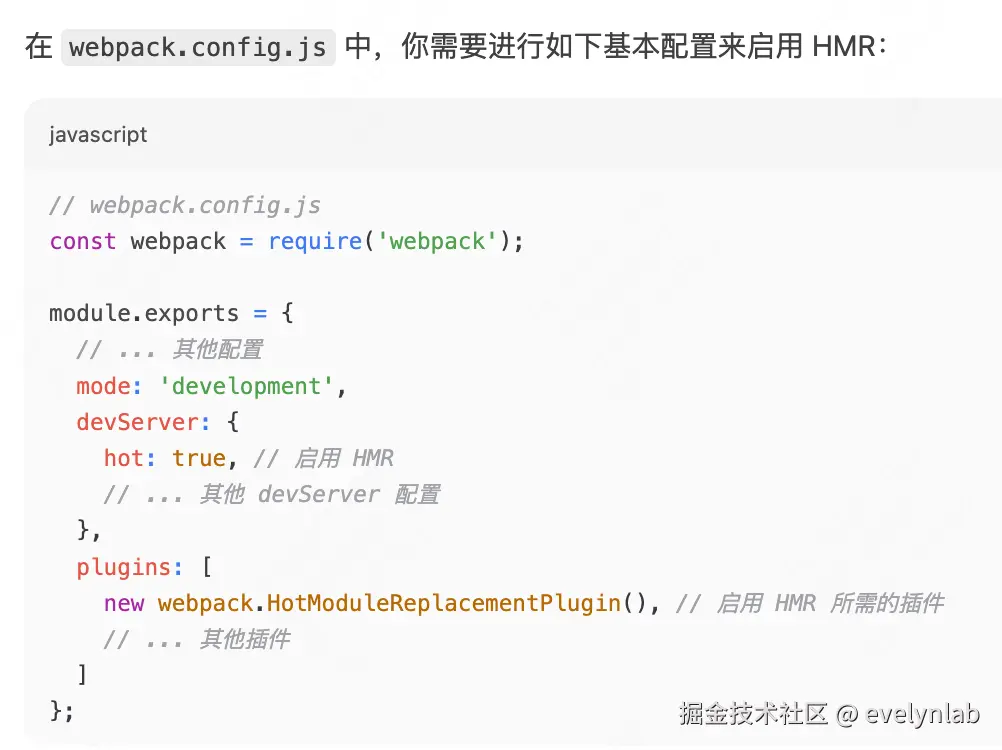 一个常见的误区:仅仅在 webpack-dev-server 配置中设置 hot: true 会自动添加这个插件。也就是说,hot: true 的本质就是让 Webpack 自动帮你 new HotModuleReplacementPlugin()。