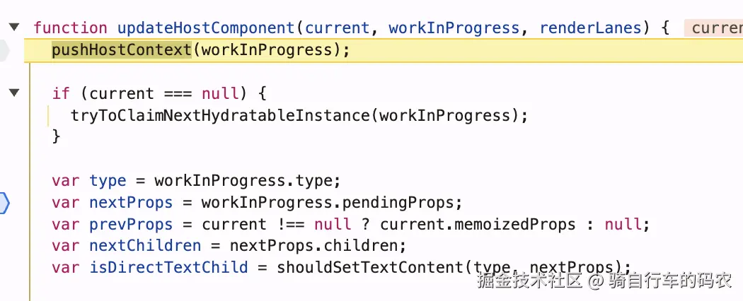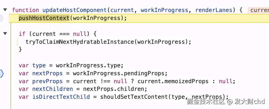 总是在fiber节点的beginWork/completeWork,在updateHostComponent等的第一行出现。