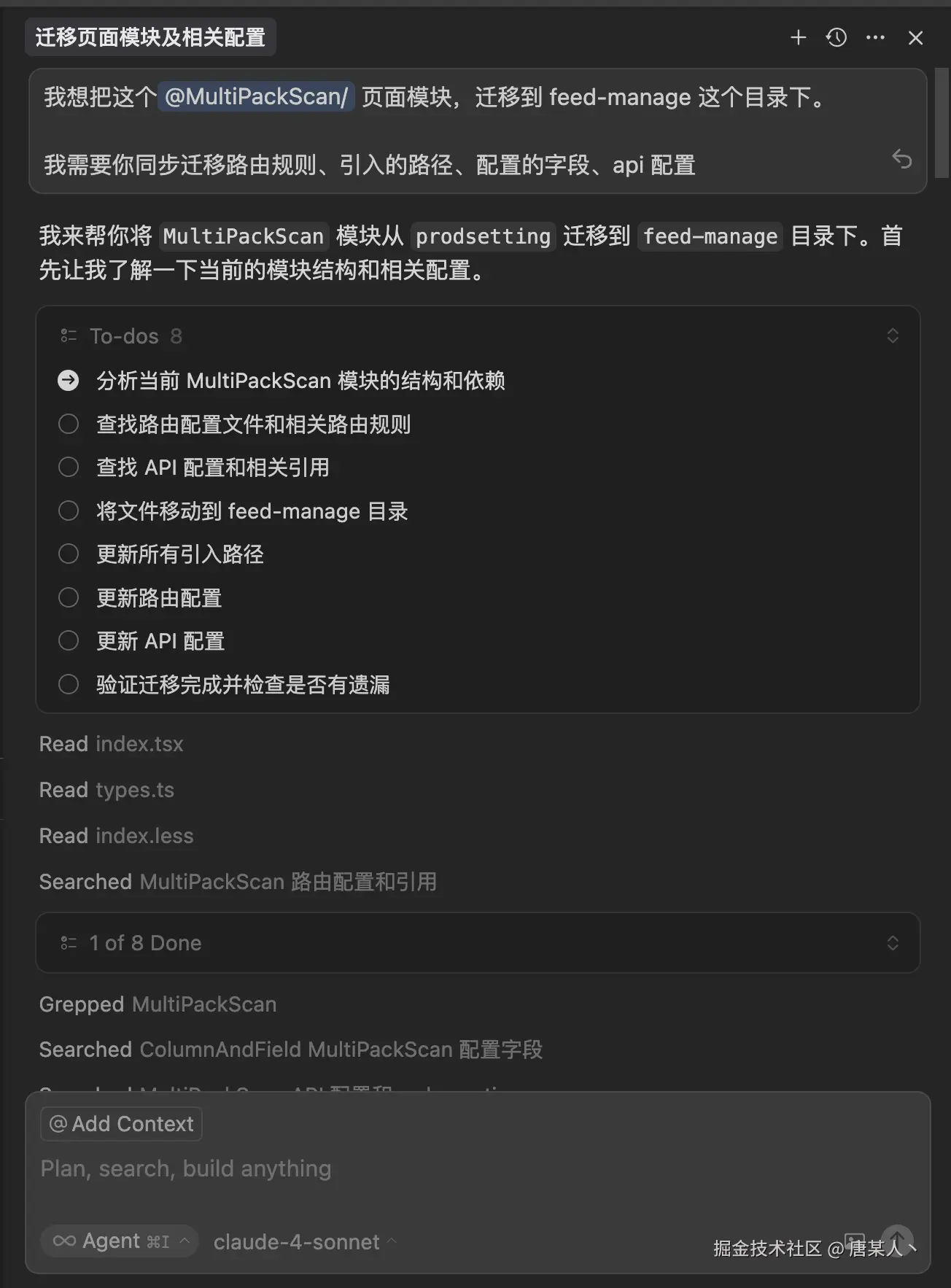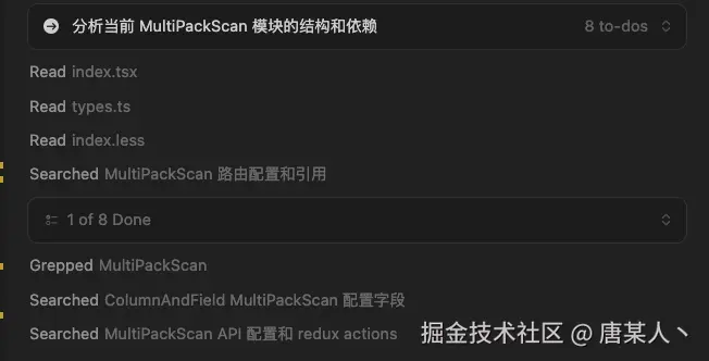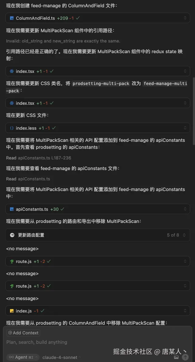 我让 Cursor 迁移项目中的一个页面模块,通过对话信息可以看到:
