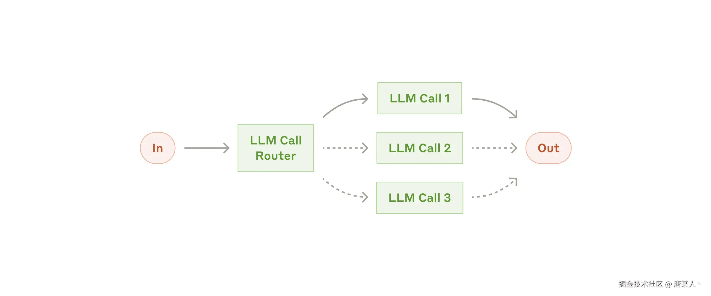 - 路由模式(Routing):根据条件判断,将任务路由到不同的LLM节点执行。