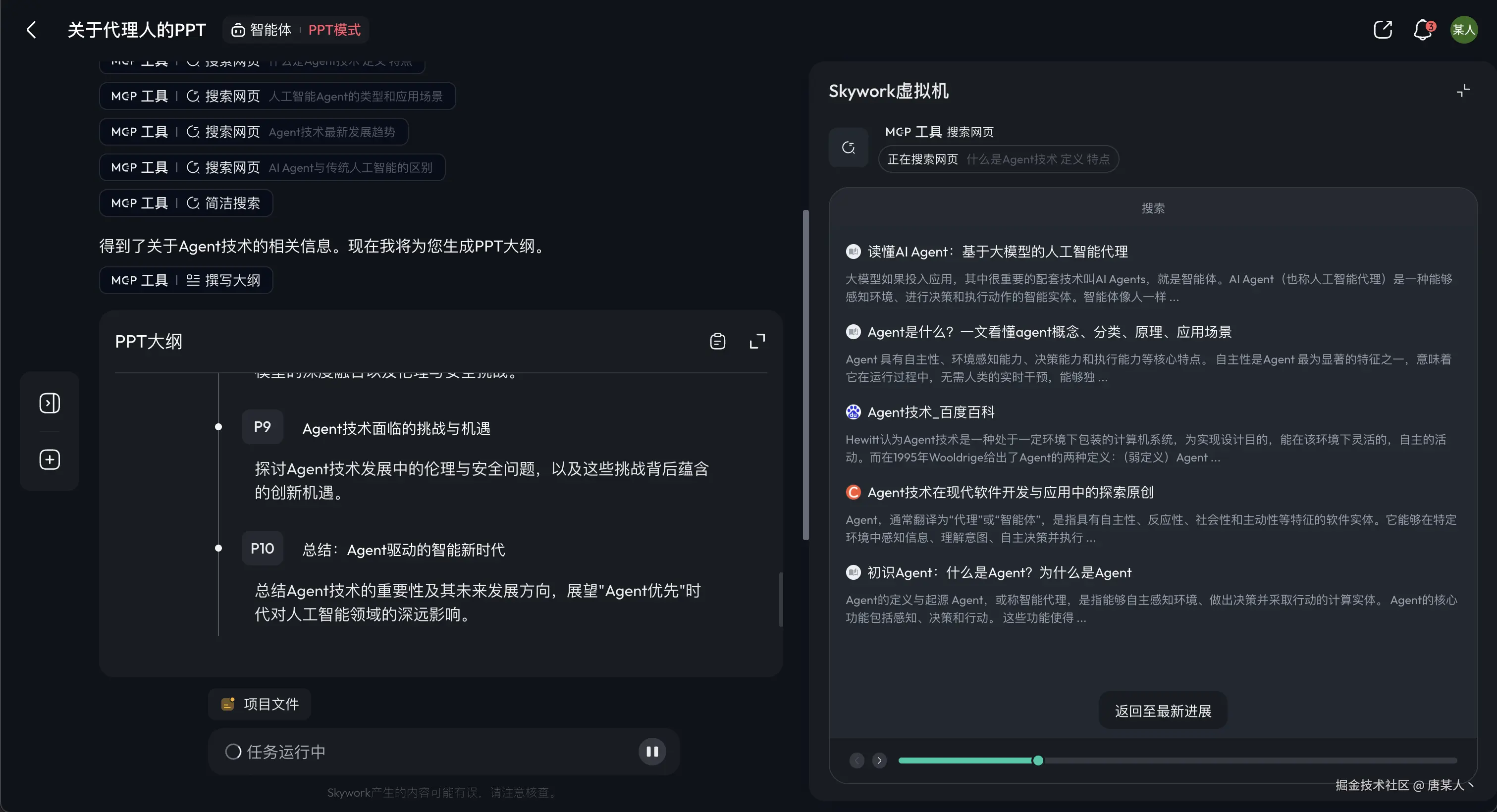 - 计划 Agent:根据“需求澄清 Agent”和用户聊天的上下文,分析并生成一份执行计划