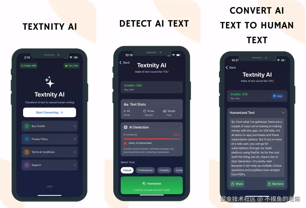 Textnity AI是一款iOS应用,能够检测AI生成的文本并将其改写为自然流畅的内容,适合学生和写作者使用。