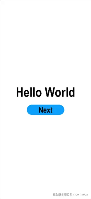 // Index.ets@Entry@Componentstruct Index { @State message: string = 'Hello World'; build() { Row() { Column() { Text(this.message) .fontSize(50) .fontWeight(FontWeight.Bold) // 添加按钮,以响应用户onClick事件 Button() { Text('Next') .fontSize(30) .fontWeight(FontWeight.Bold) } .type(ButtonType.Capsule) .margin({ top: 20 }) .backgroundColor('#0D9FFB') .width('40%') .height('5%') } .width('100%') } .height('100%') }} -