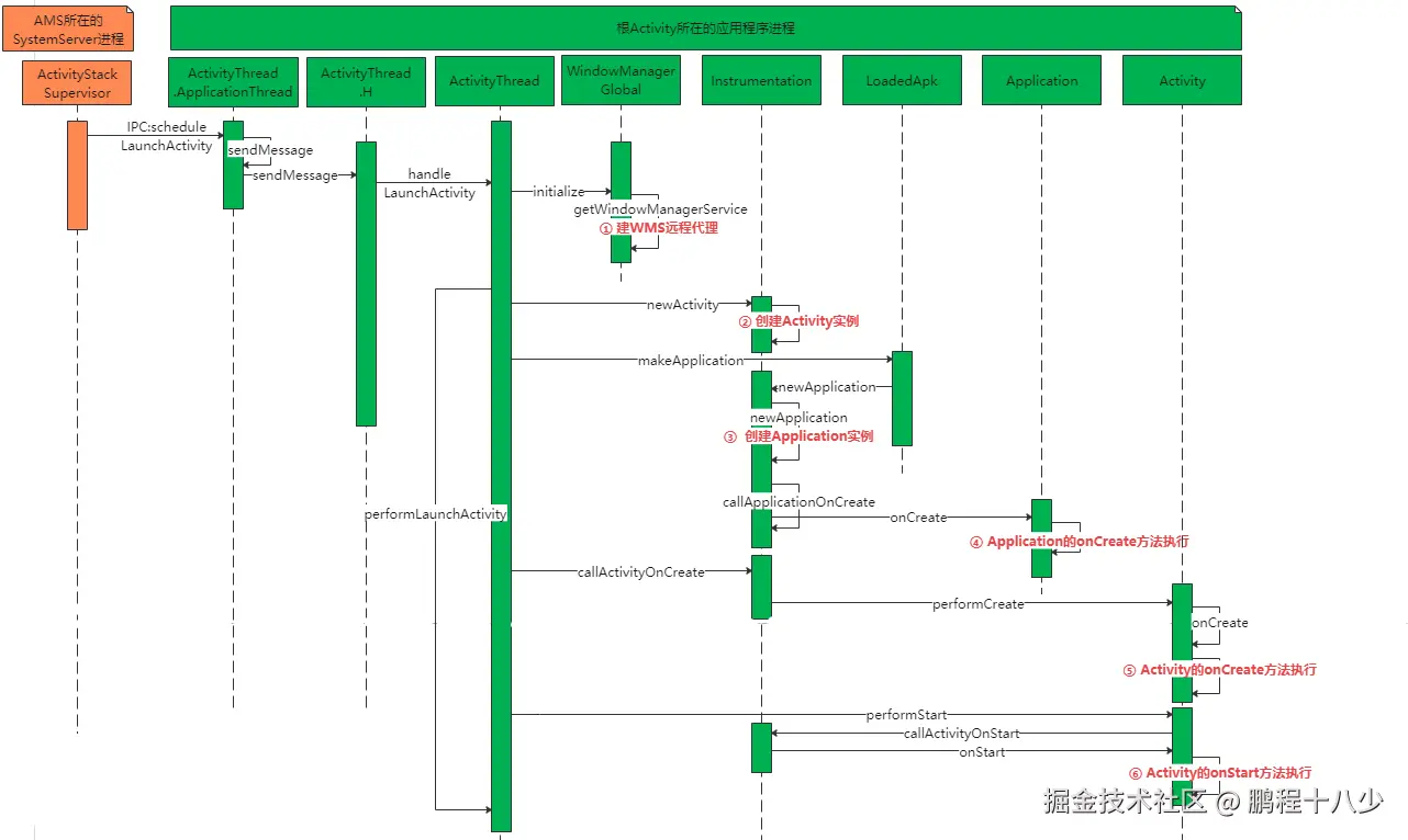 → ApplicationThread.scheduleLaunchActivity() // IPC到应用进程