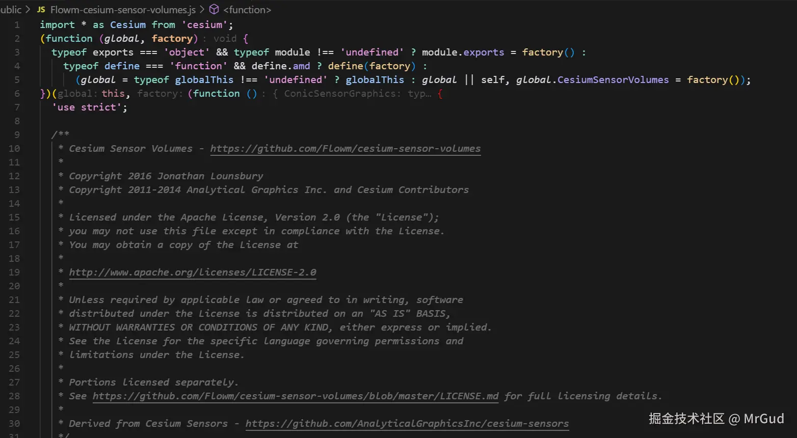 首先我们将插件下载后在js文件最上方引入cesium,如下图所示
