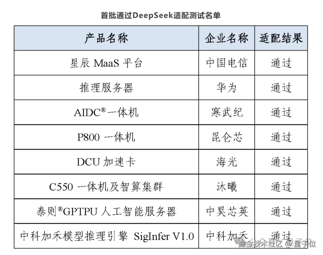 在官方有意卖关子的情况下,人们只好首先把目光放在了首批通过 “DeepSeek 大模型适配” 的 8 家厂商。