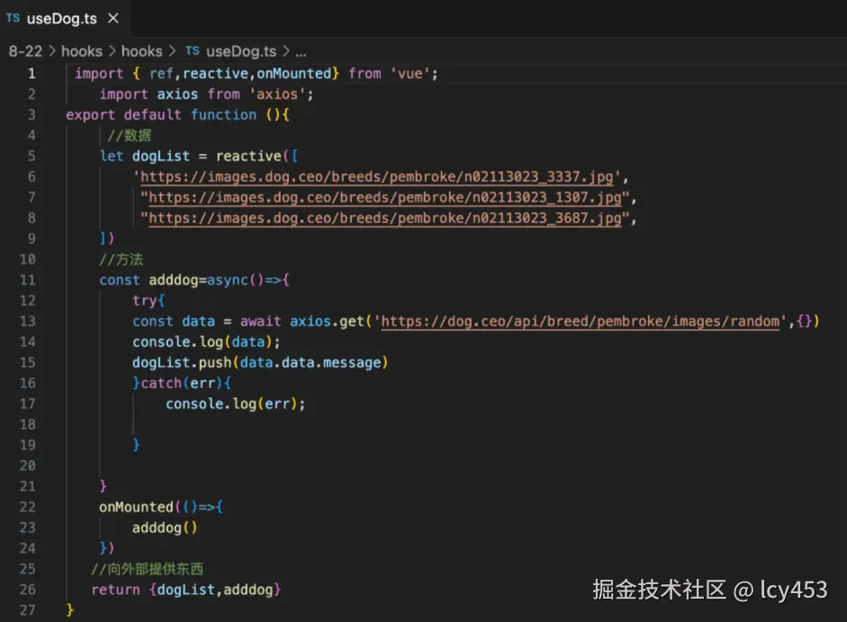 hooks当我们操作的方法和数据很多组件要使用或者很明显重复代码过多,那么就可以提取到一个ts文件也就是包裹一个匿名函数里面,文件名use开头。