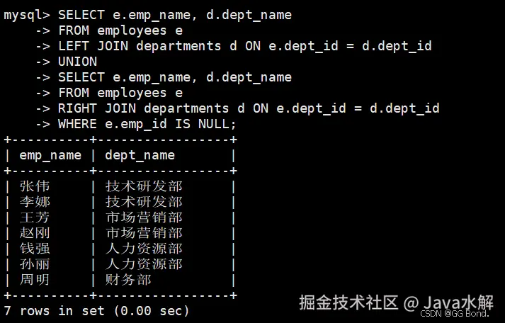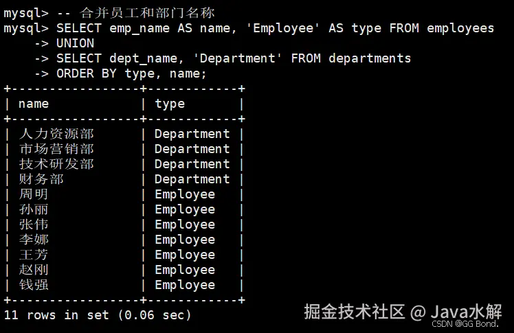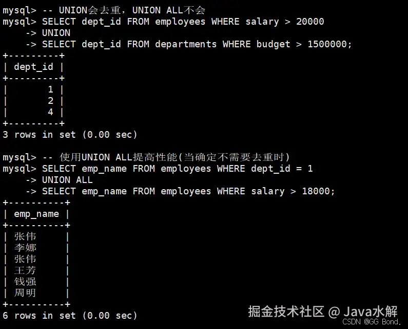 MySQL中常见的复合查询包括:
