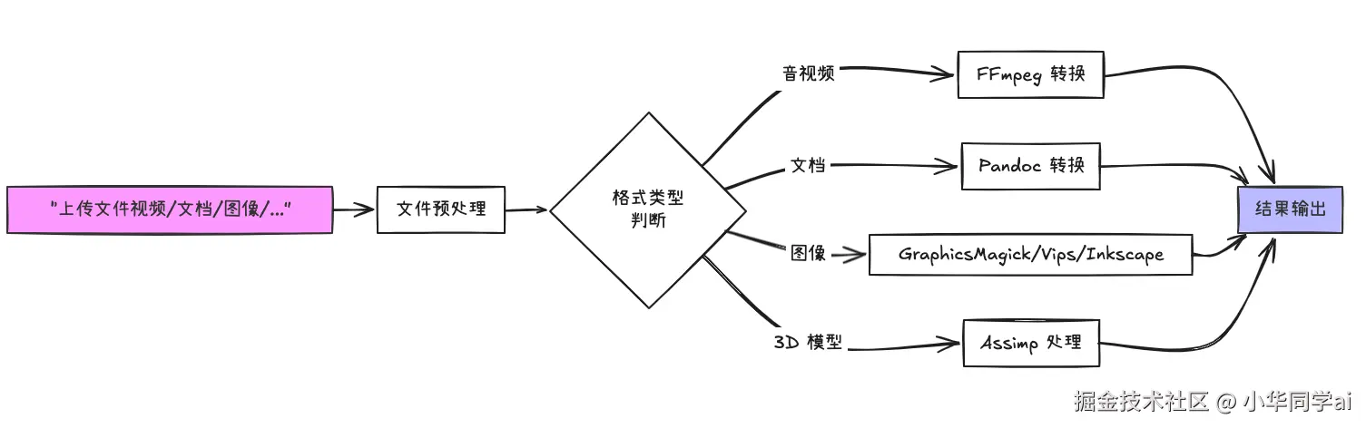 - 格式多样:面对不同场景(视频转码、文档格式转换、图形批量处理等),手动搭配工具复杂、效率低。