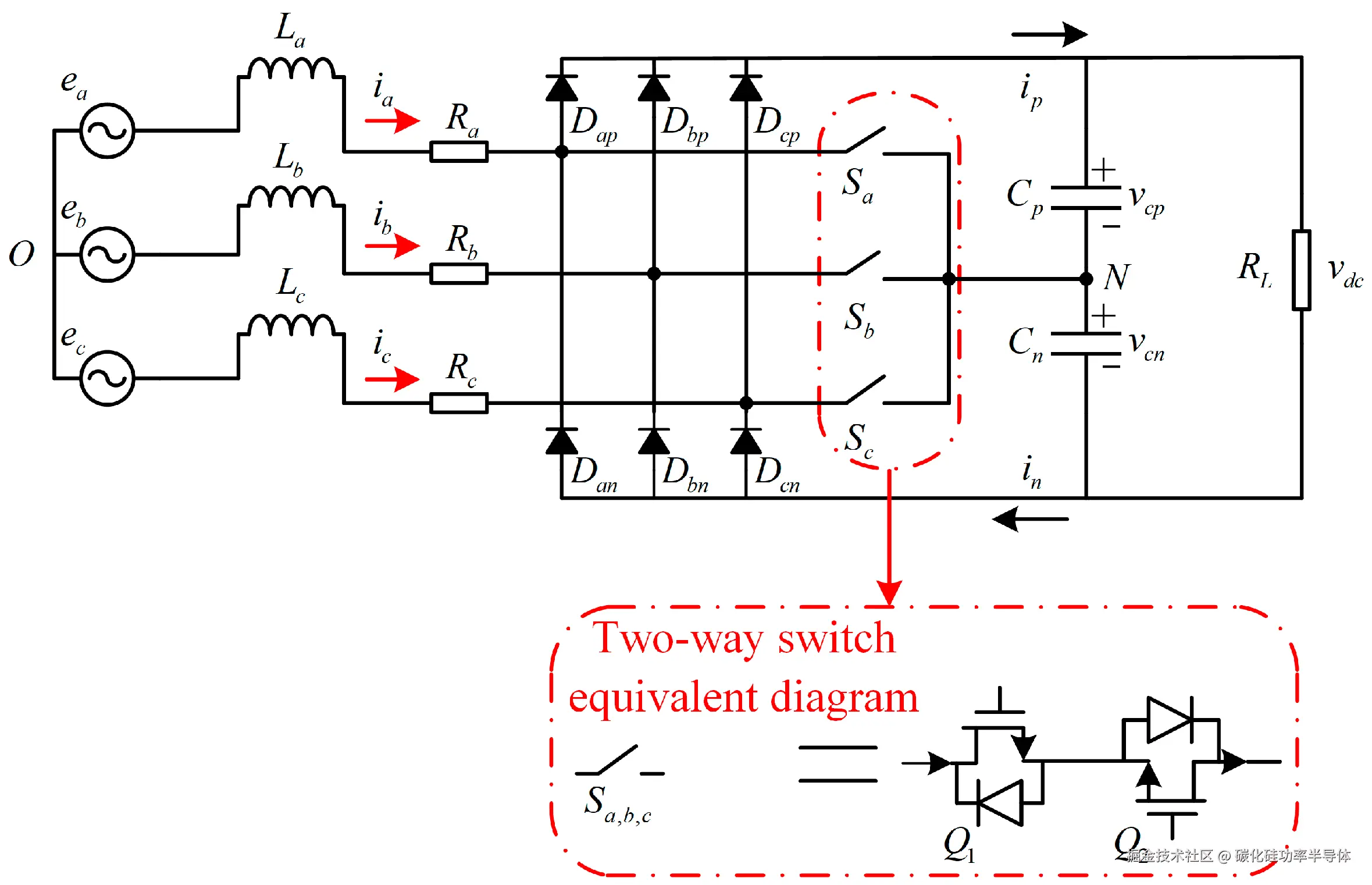 维也纳整流器的诞生并非偶然,而是针对传统六开关变换器在特定应用场景下的性能瓶颈所提出的定向解决方案。在那些不要求能量回灌(即单向功率流)的场合,传统的六开关全控整流器虽然功能全面,但其冗余的开关管数量和复杂的控制策略增加了成本和损耗 。