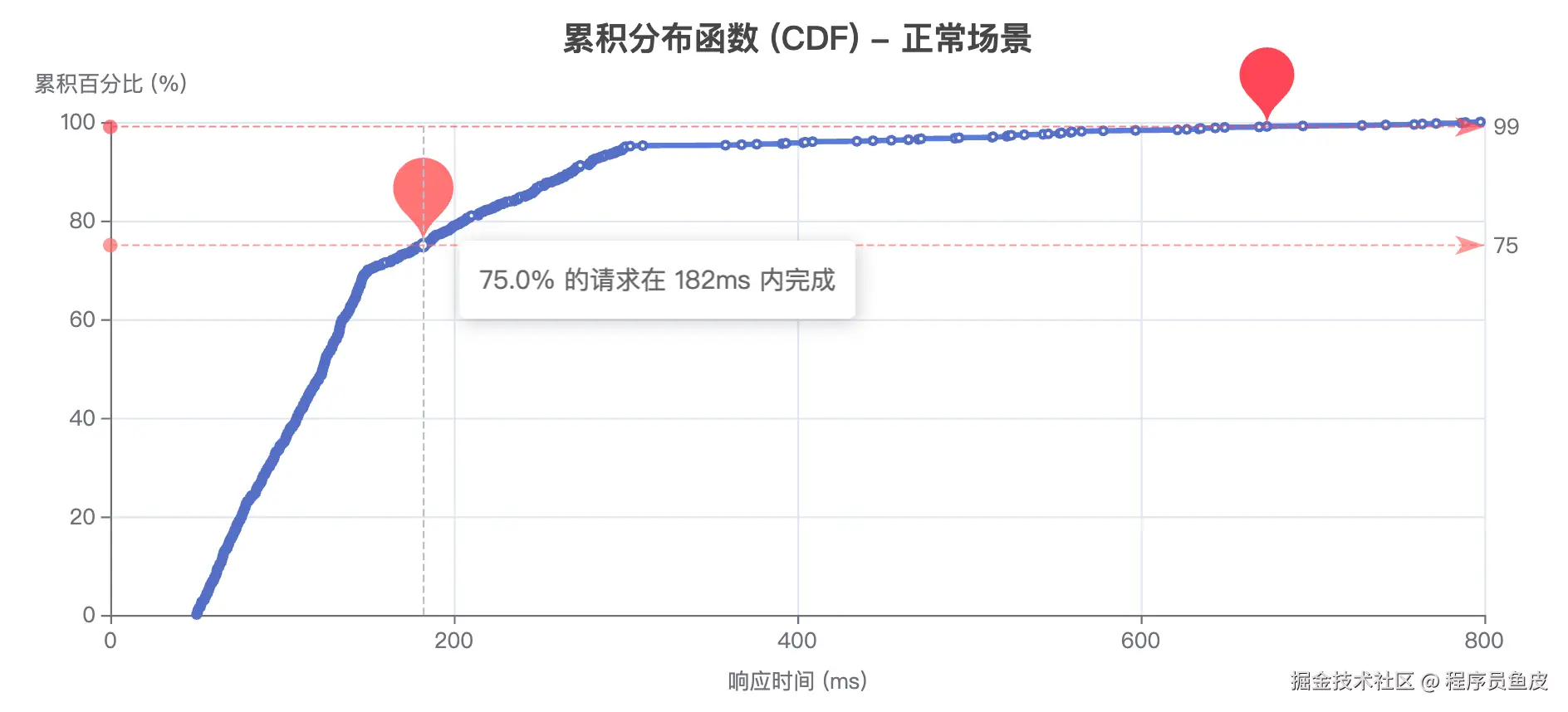 在性能监控中,我们经常会看到 P50、P75、P90、P99 这些指标,它们被称为 百分位数。