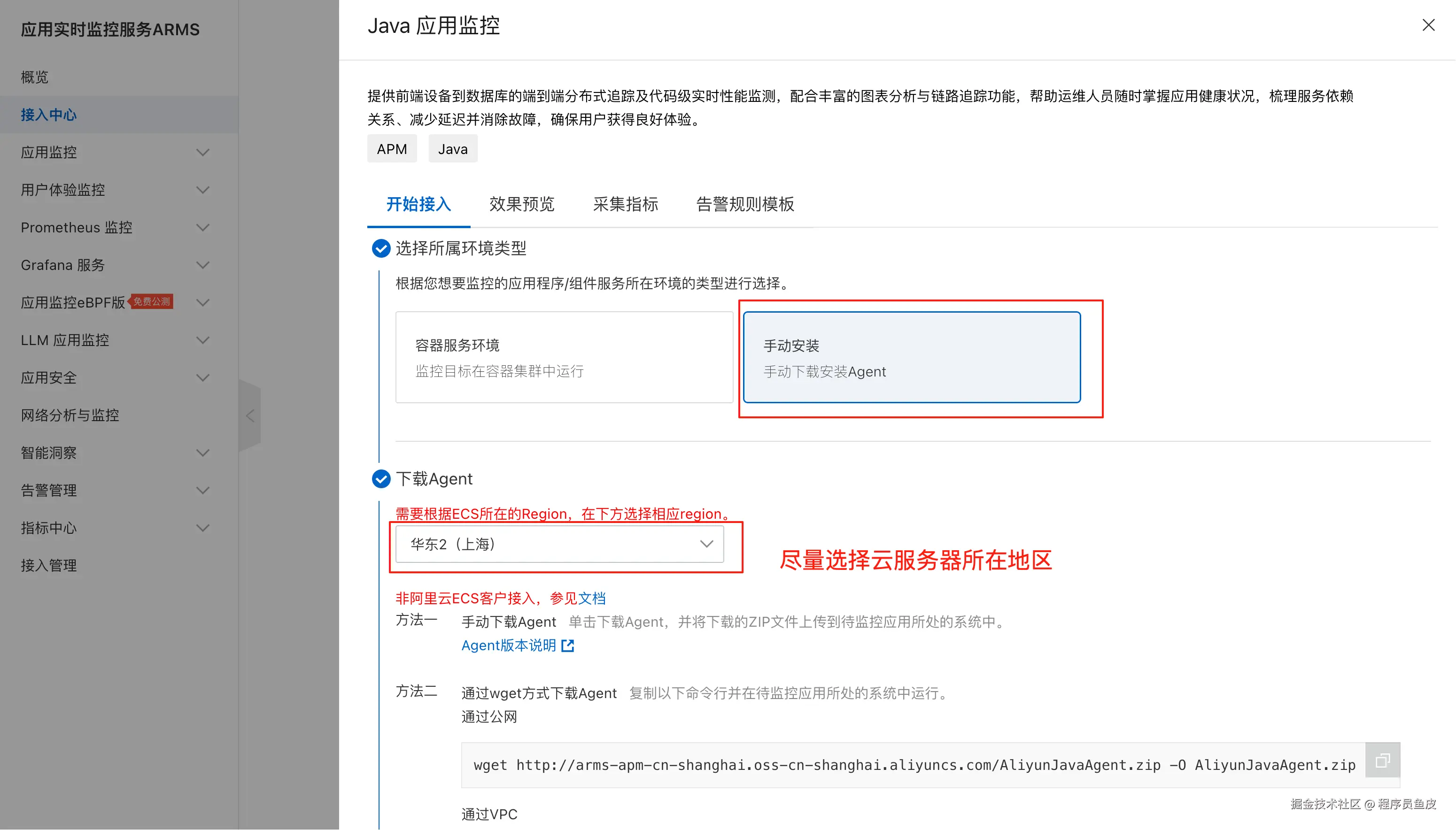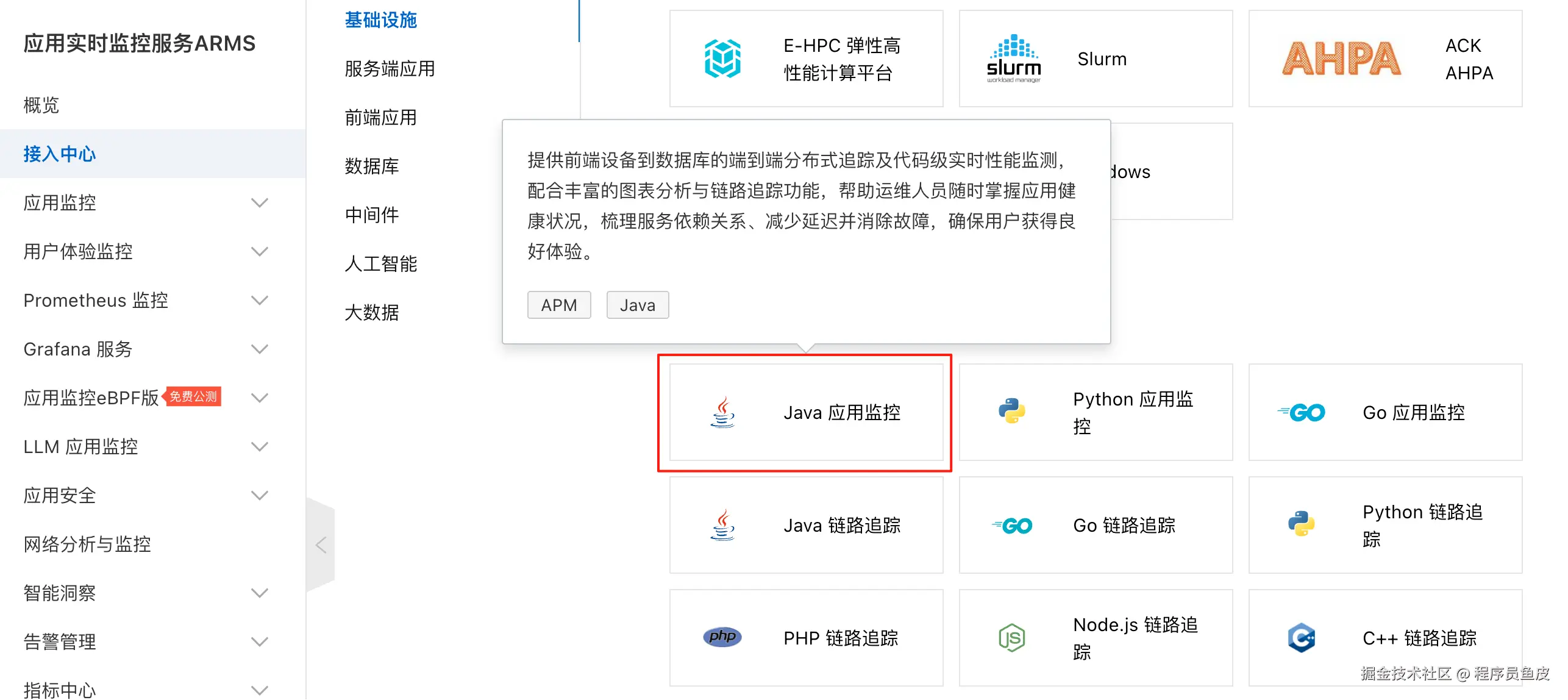 ARMS 是阿里云提供的应用实时监控服务,采用了探针技术,能够在不修改应用代码的情况下,自动收集和分析应用性能数据,快速构建实时的监控能力。