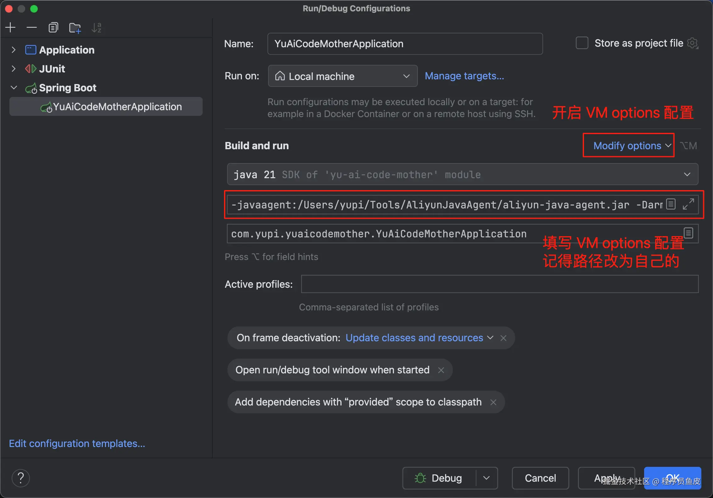 -javaagent:/Users/yupi/Tools/AliyunJavaAgent/aliyun-java-agent.jar