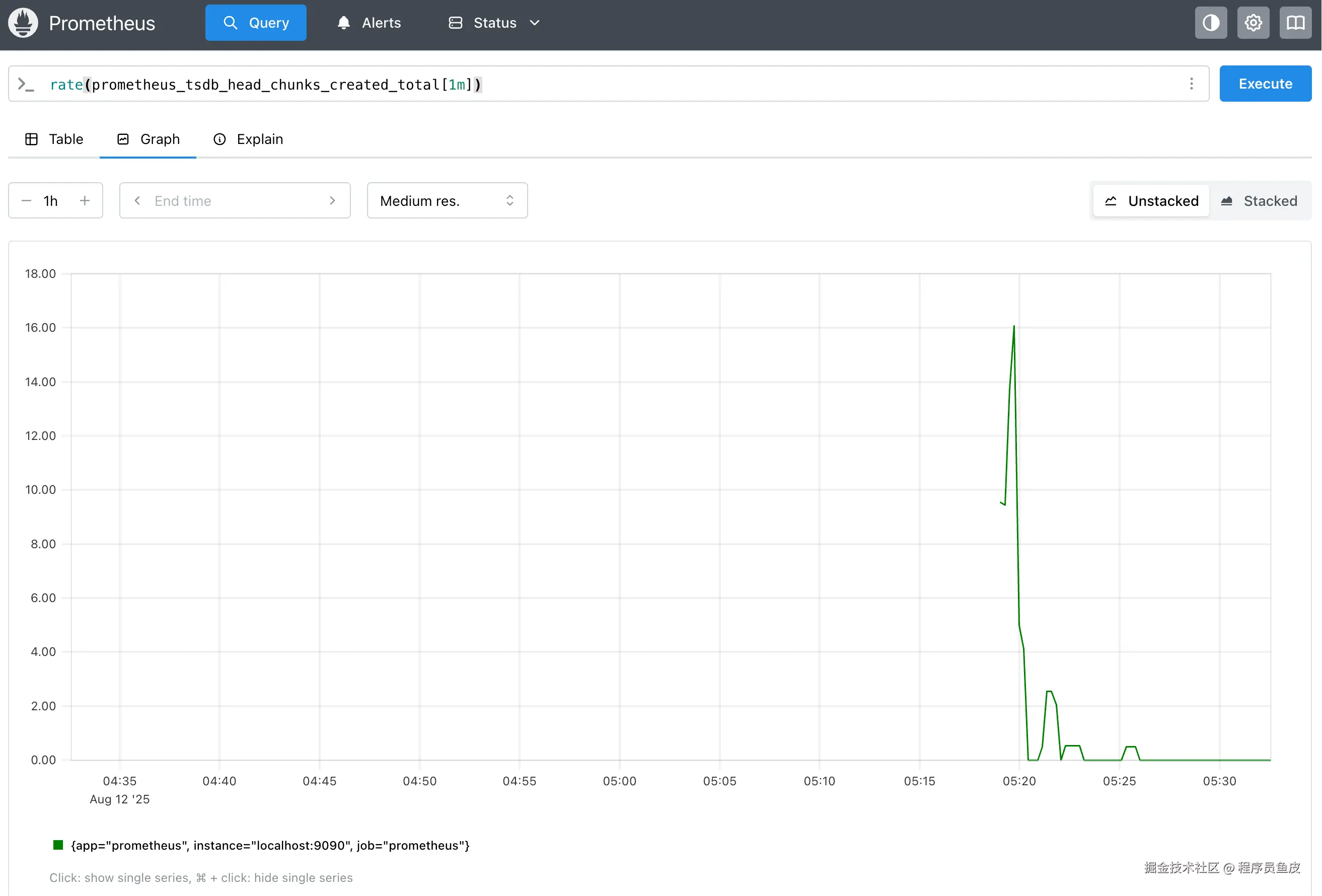可以看到相同维度的指标自动进行了聚合,确认各个指标统计正确。