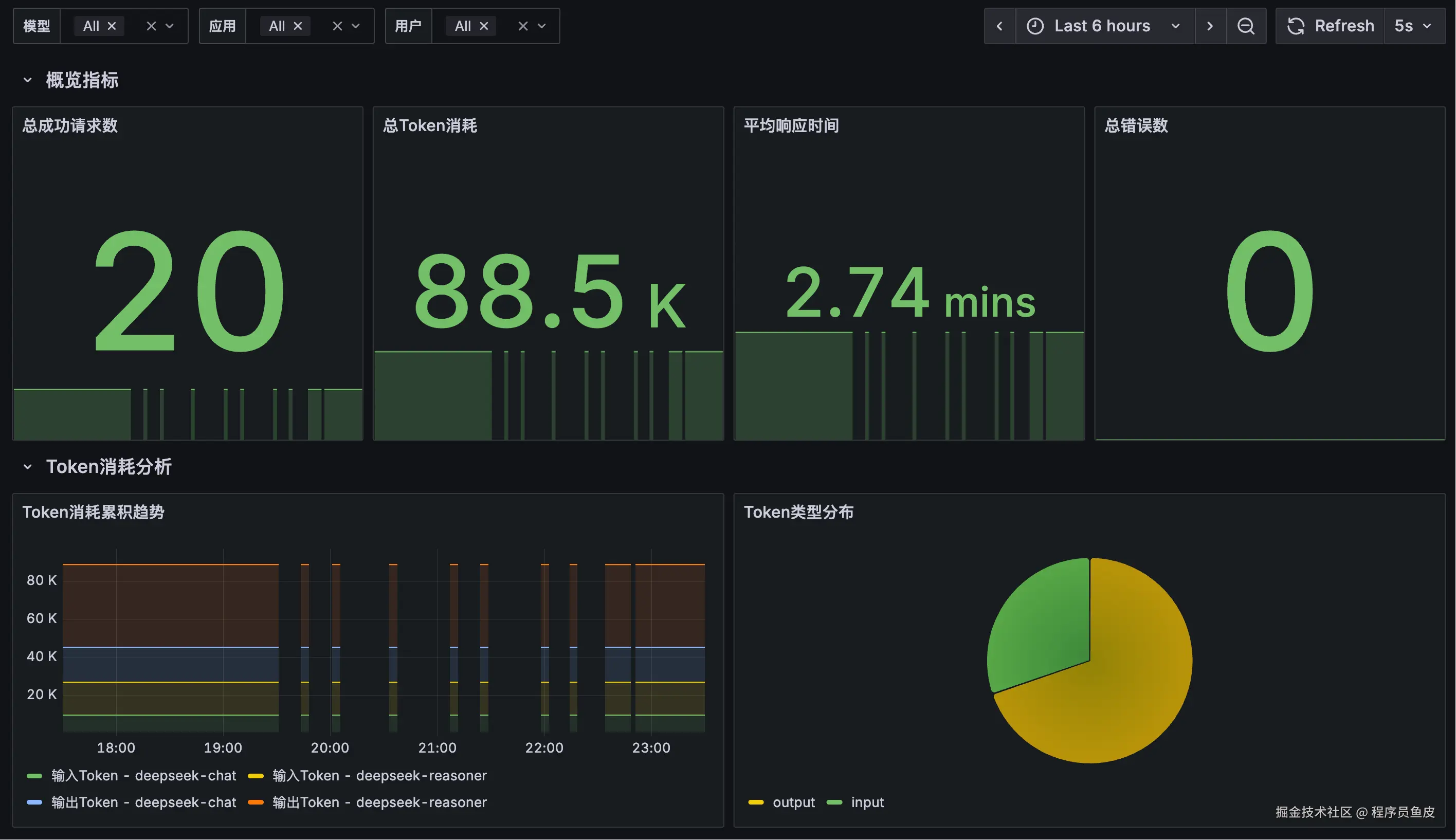 3)业务指标:针对我们平台的特定业务逻辑,比如 AI 模型调用次数、Token 消耗量、用户活跃度等。