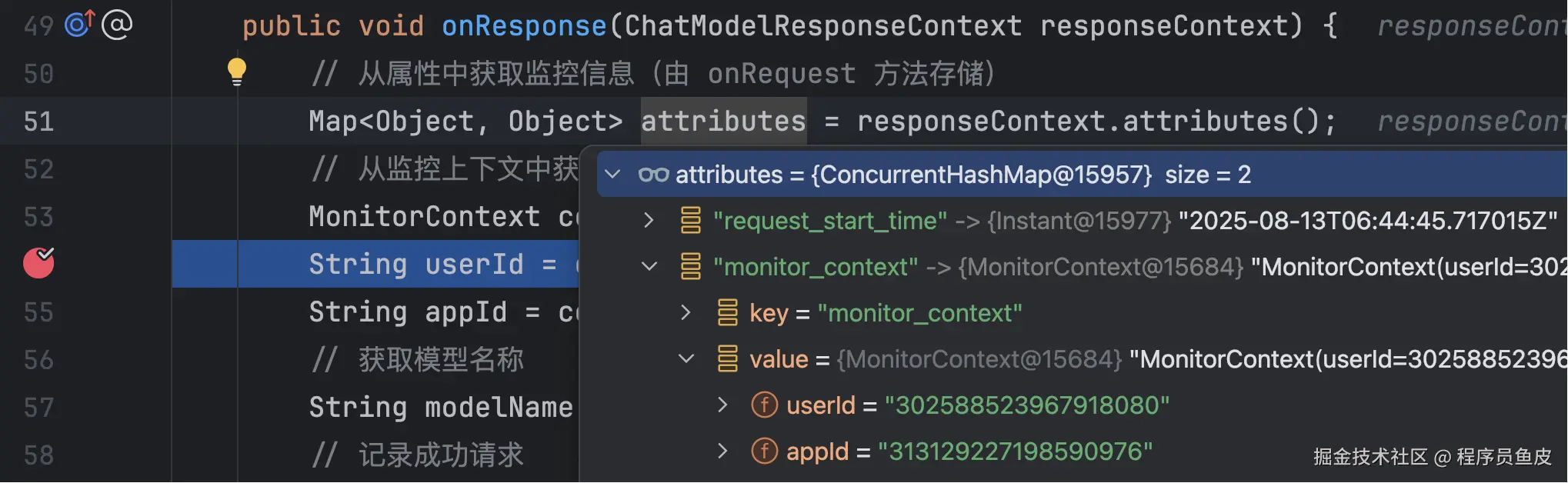 - 线程切换问题:请求监听在主线程,但响应监听可能在另一个线程,所以要通过 AI context 的 attributes 传递参数。