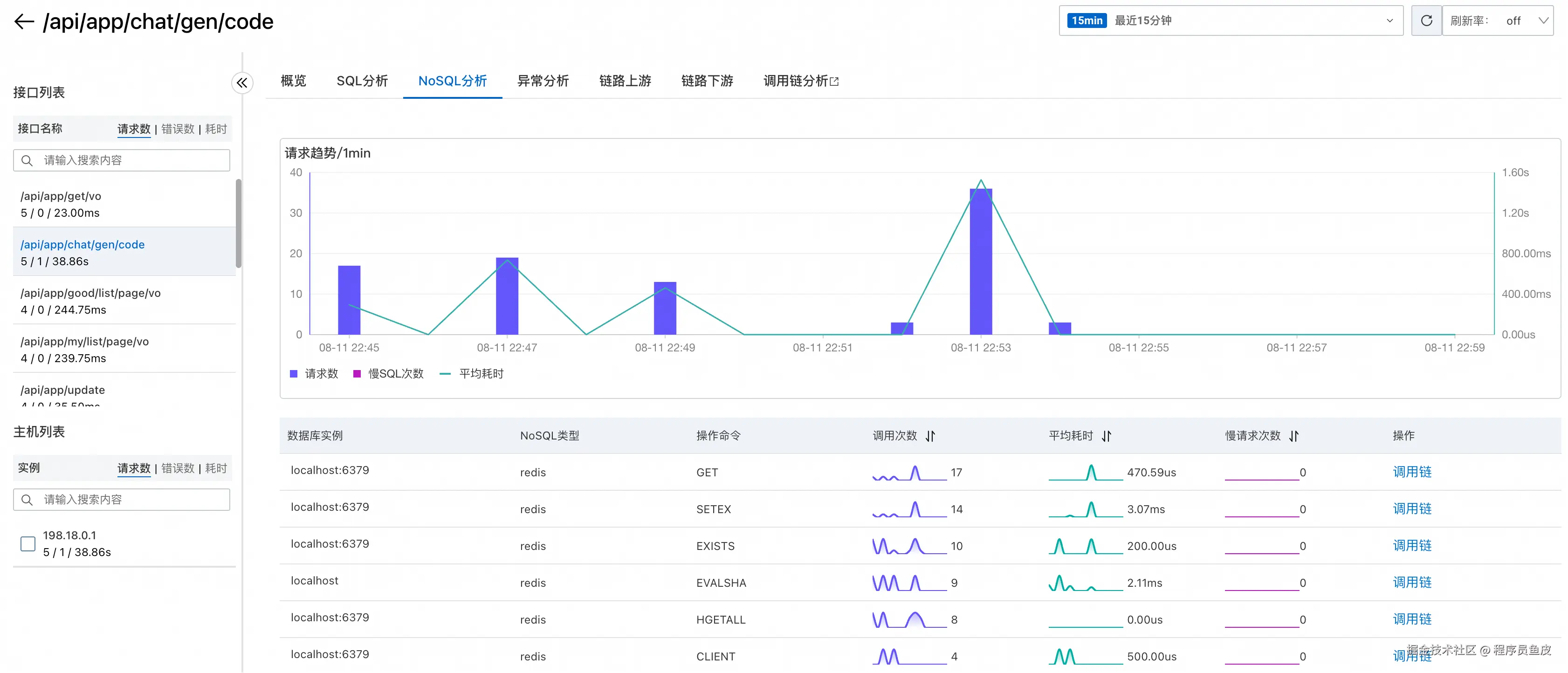 点击具体接口还可以深入分析该接口的详细数据(这就是所谓的 “下钻分析”):