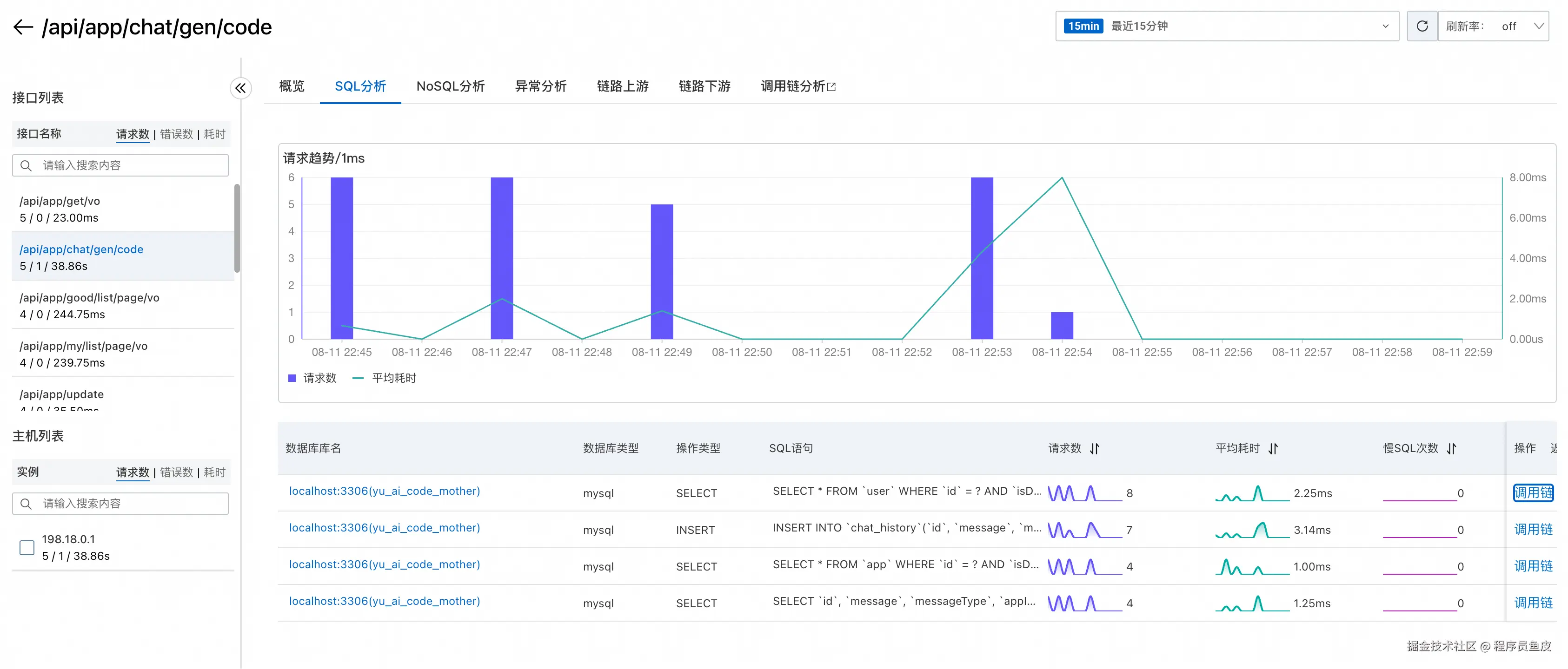 这里能够看到执行的具体 SQL 语句和慢 SQL,一目了然!