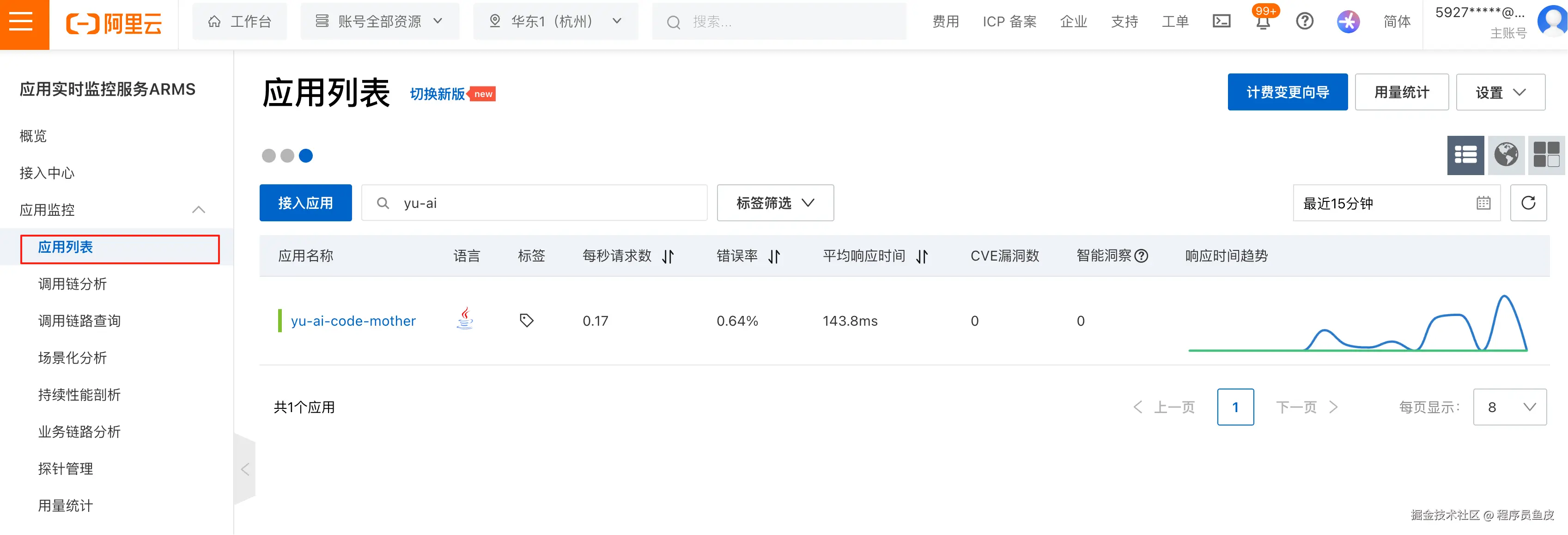 最后,回到 ARMS 控制台的应用列表页面,就能看到刚刚接入的应用了: