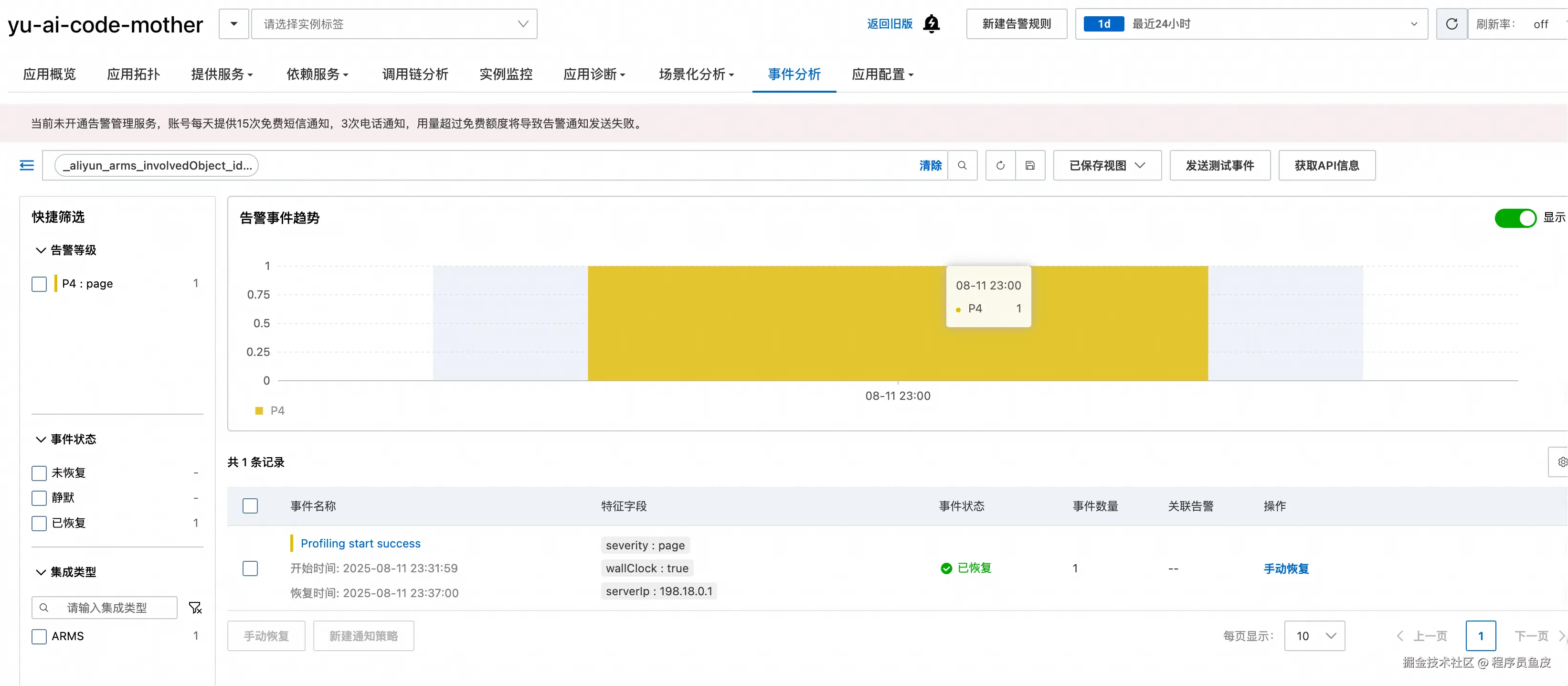 1)利用 ARMS 平台进行系统指标监控:这是一种开箱即用的方案,通过集成阿里云 ARMS 等监控平台,可以快速获得系统层面的全面监控能力。